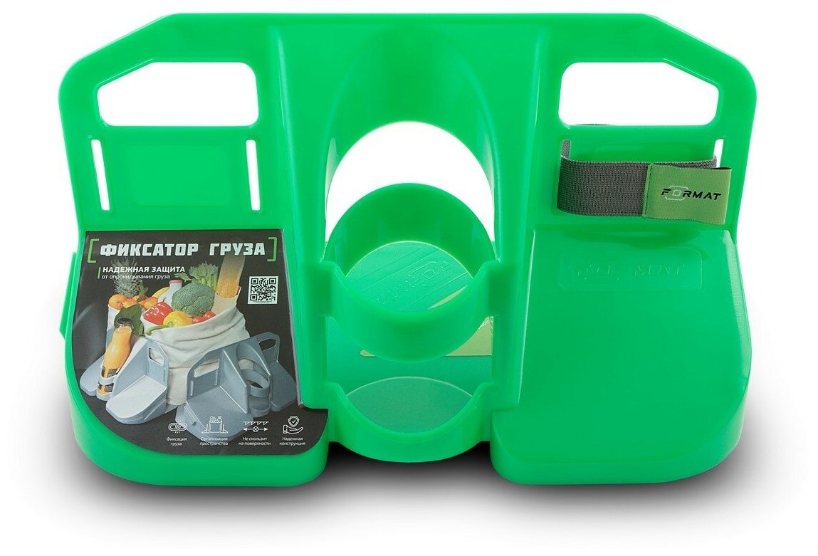 Фиксатор груза FORMAT – это простое и компактное решение, не дающее смещаться грузу в багажном отделении автомобиля. Запатентованная конструкция удерживает груз, когда автомобиль проходит крутой поворот, разгоняется или тормозит. Между шипами противоскольжения фиксатора и напольным покрытием автомобиля, под весом груза, создается повышенное трение, которое предотвращает смещение. Нужно подпереть груз к стенке багажного отделения фиксатором и он точно останется на месте. В комплект входит яркий эластичный ремешок для крепления небольших предметов, например термоса. Фиксатор груза FORMAT имеет специальную зону, в которой можно удобно разместить бутылку с напитком. Фиксаторы можно соединять между собой боковыми защелками для зонирования пространства в багажном отделении, что делает перевозку грузов еще удобнее. Для создания настроения в каждой поездке фиксатор груза имеет окраску самых модных и ярких цветов: огненно-оранжевый, мятно-зеленый, землянично-розовый и стремительный-серебристый. Материал: _