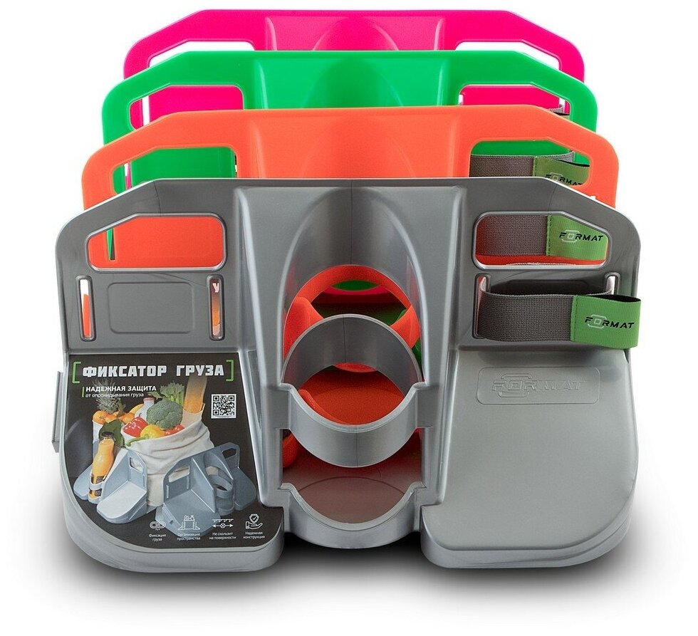 Фиксатор груза FORMAT – это простое и компактное решение, не дающее смещаться грузу в багажном отделении автомобиля. Запатентованная конструкция удерживает груз, когда автомобиль проходит крутой поворот, разгоняется или тормозит. Между шипами противоскольжения фиксатора и напольным покрытием автомобиля, под весом груза, создается повышенное трение, которое предотвращает смещение. Нужно подпереть груз к стенке багажного отделения фиксатором и он точно останется на месте. В комплект входит яркий эластичный ремешок для крепления небольших предметов, например термоса. Фиксатор груза FORMAT имеет специальную зону, в которой можно удобно разместить бутылку с напитком. Фиксаторы можно соединять между собой боковыми защелками для зонирования пространства в багажном отделении, что делает перевозку грузов еще удобнее. Для создания настроения в каждой поездке фиксатор груза имеет окраску самых модных и ярких цветов: огненно-оранжевый, мятно-зеленый, землянично-розовый и стремительный-серебристый. Материал: _
