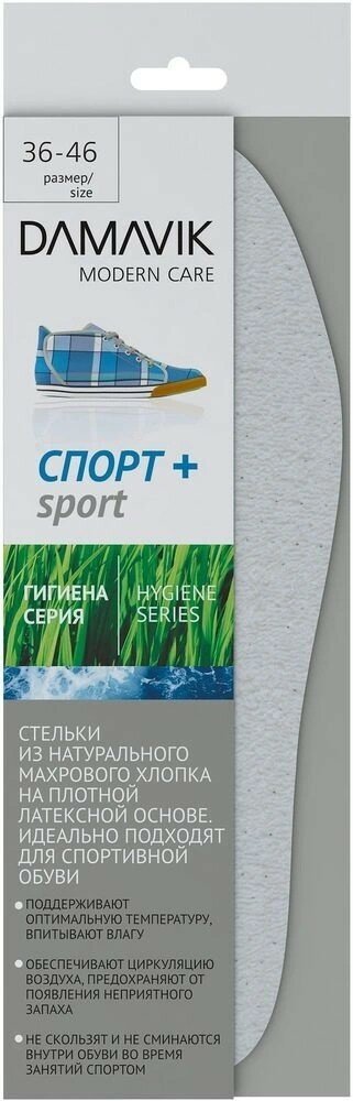 Идеально подходят для спортивной обуви. Поддерживают оптимальную температуру, впитывают влагу. Обеспечивают циркуляцию воздуха, предохраняют от появления неприятного запаха. Не скользят и не сминаются внутри обуви во время занятий спортом. Амортизируют нагрузки на стопу, обеспечивая комфорт и удобство, и облегчают болевые ощущения.