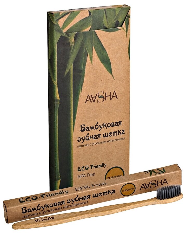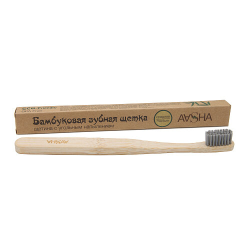 Бамбуковая зубная щетка Aasha Herbals с угольным напылением средняя