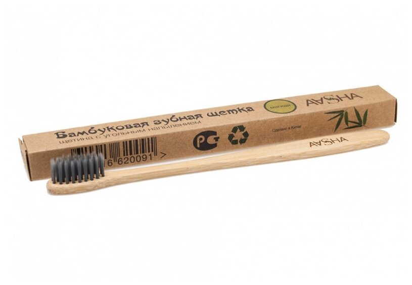 Зубная щетка с натуральной бамбуковой ручкой и щетиной с угольным напылением в ECO-крафт упаковке вторичной переработки. Щетина с угольным напылением создает сильное абсорбирующее и дезодорирующее действие, не травмируя зубную эмаль, восстанавливает естественную белизну зубов. Ионы древесного, бамбукового угля, нанесенные на каждую ворсинку невероятно отбеливают зубную эмаль и справляются с различными пищевыми налетами.