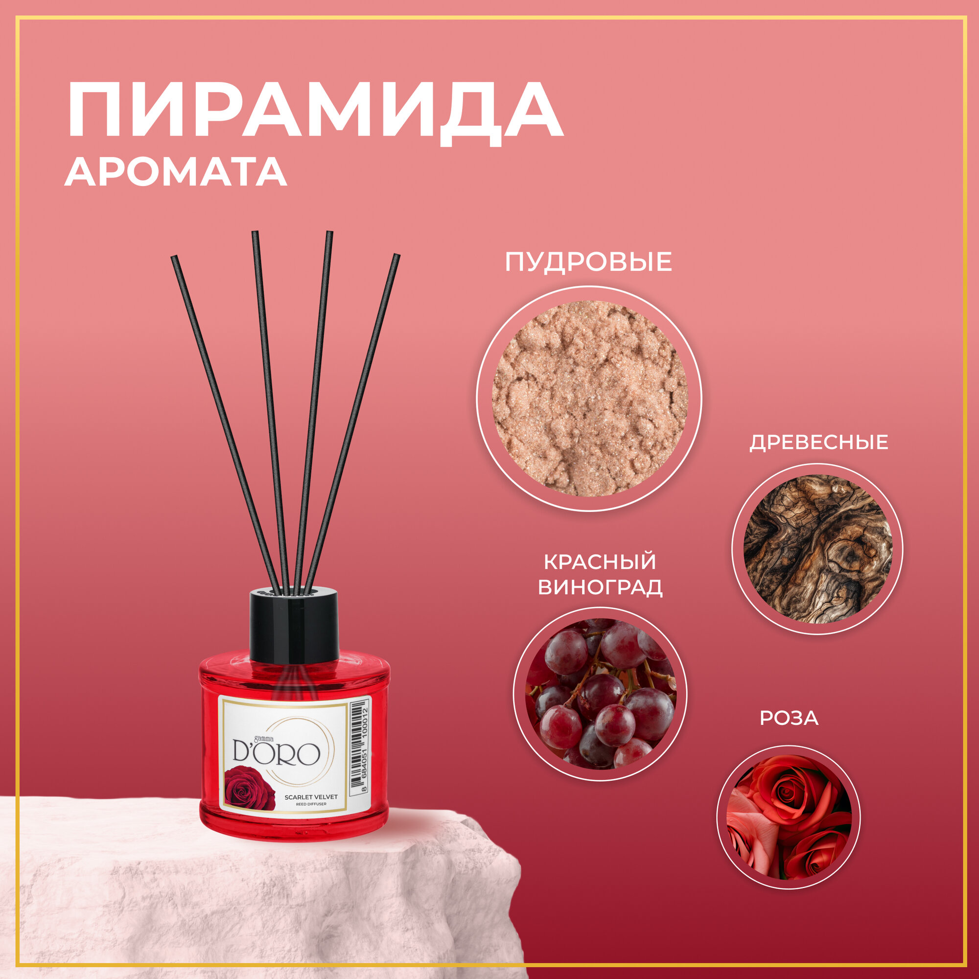 Аромадиффузор с палочками Пылающая страсть от бренда Gamma D'Oro - самый загадочный и возбуждающий воображение аромат из нашей линейки парфюма для дома. Этот эксклюзивный диффузор для дома представлен цветочными и древесными нотами в сочетании с цитрусовыми оттенками, возбуждающими ваше сердце и все ваши чувства, этот ароматизатор для дома с палочками наполнит ваш дом теплым приятным ветерком путешествий в дальние страны. Натуральные эфирные масла, входящие в состав наших ароматов для дома, помогают укрепить иммунитет и улучшить самочувствие, они безопасны даже для детей и животных. В помещении в один миг исчезают посторонние запахи: еды, бытовой химии, дыма, чувствуется лишь легкий приятный натуральный аромат парфюмерии для дома. Наш интерьерный освежитель воздуха прекрасно впишется в любой, даже самый изысканный интерьер, ведь флакон для диффузора имеет универсальный дизайн. В состав жидкости для аромадиффузора входят сертифицированные аромамасла из Франции, в качестве палочек для ароматического диффузора - высококачественные фибровые аромапалочки, которые равномерно впитывают эфирные масла и постепенно, в течение длительного времени (до 8 недель для ароматического диффузора объемом 100 мл) отдают в окружающее пространство масло из диффузора. Срок годности диффузора для дома с палочками Gamma Doro составляет 5 лет. Ароматический диффузор с палочками произведен с Турции на специализированном парфюмерном заводе, сертифицированном по всем международным стандартам. Диффузоры ароматические Гамма Доро зарегистрированы в РФ и имеют сертификат безопасности продукции. Парфюм для дома с палочками Гамма Доро будет оригинальным подарком женщине, на 8 марта, учителю или коллеге. Аромадиффузор - прекрасный элемент для создания уюта дома. Инструкция по применению ароматизатора с палочками для дома: снимите с диффузора крышку и выньте пластмассовую пробку. Вставьте требуемое количество палочек для ароматического диффузора (чем больше ароматизированных палочек, тем ярче будет аромат, но выше расход духов для дома). Наденьте на аромадиффузор крышку. Раз в 3-4 дня переворачивайте аромапалочки для равномерного распространения масла для ароматизатора. Наслаждайтесь легким натуральным ароматом ароматизатора с палочками Gamma D’Oro!