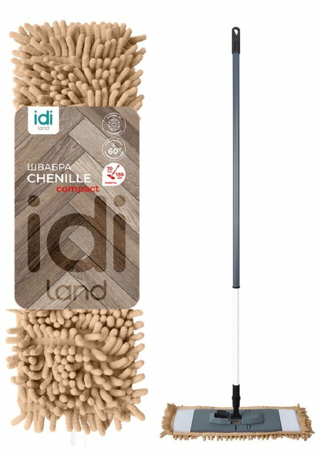 Швабра Chenille Compact имеет сменную насадку из микрофибры весом 85 грамм и особым плетением, отличающимся крупными и длинными нитями. Позволяет не только впитывать больше влаги за счёт увеличенного веса насадки, но и за счёт своей текстуры проводить сухую уборку, собирать шерсть животных и пыль. Швабра укоплектована телескопическим черенком, регулирующимся в диапазоне 70-150 см. Благодаря телескопическому черенку, швабра занимает минимум места дома, в сложенном черенке и целиком отвечает идее компактного хранения. Внимание! Цвет товара в ассортименте, поставляется без право выбора цвета.