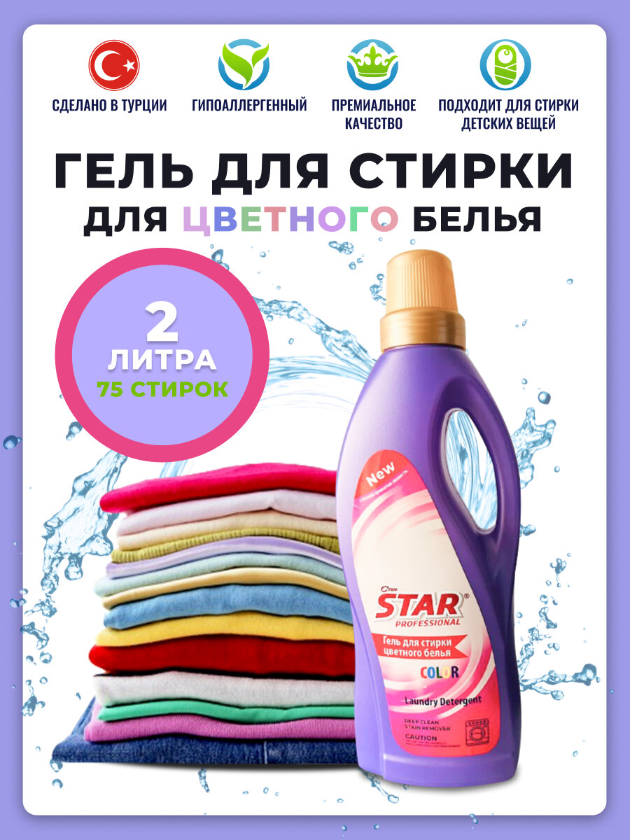 Гель Can Star - это универсальное средство для стирки, которое подходит для цветных и белых изделий из хлопка, льна, синтетических тканей и смешанных волокон. Оно обеспечивает приятный аромат свежести и антибактериальную защиту. Гель концентрат "Can STAR" подходит для использования в стиральных машинах любого типа, ручной стирки и замачивания. Объем: 3 литра, количество стирок: 60, вес: 3,2 кг, объем: 3 л, количество в упаковке: 1. Гель представлен в двух вариантах для стирки цветного или белого белья. Он содержит консерванты и а-тензиды, не содержит парабенов и сульфатов. Гель безопасен для чувствительной кожи и может использоваться без перчаток.Преимущества геля Can Star:- антибактериальный эффект;- устранение неприятных запахов;- антистатический эффект;Способ применения:Перед применением рекомендуется взболтать гель для стирки; предварительная обработка пятен нужна для сильных загрязнений. Нанесите гель на пятно непосредственно перед стиркой. Дозируйте гель при помощи колпачка в секцию ополаскивания стиральных машин и добавляйте воду для окончательного полоскания.В случае замерзания гель после размораживания сохраняет свои свойства. Гель Can Star подходит для всех типов тканей, включая деликатные, спортивную одежду, джинсовые ткани, цветные ткани и нижнее белье. Он также может быть использован для стирки детского белья и для хлопка.Can Star - это качественный и эффективный продукт для стирки, который подходит для подарков на любой праздник.