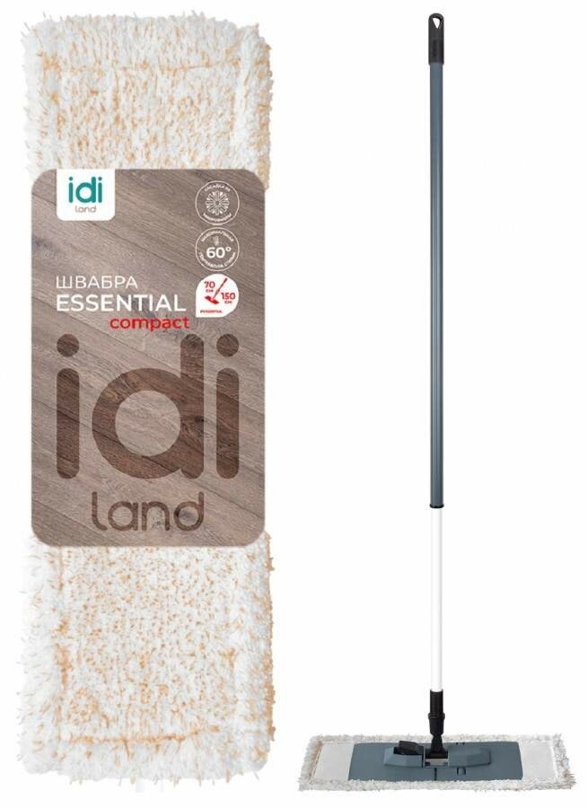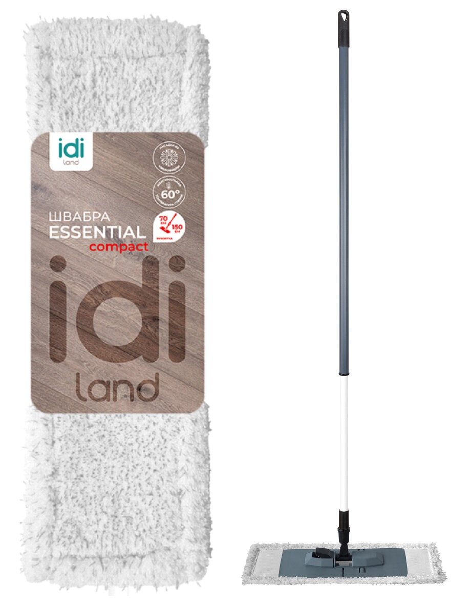 Швабра Essential Compact имеет сменную уплотнённую насадку из микрофибры весом 60 грамм. За счёт более высокой плотности насадки, является наиболее оптимальным сочетанием цены и качества в среднем ценовом сегменте. Швабра укоплектована телескопическим череноком 70-150 см. Благодаря такому черенку позволяет дотянутся до самых дальних уголков квартиры и в то же время целиком отвечет идее домашнего компактного хранения.