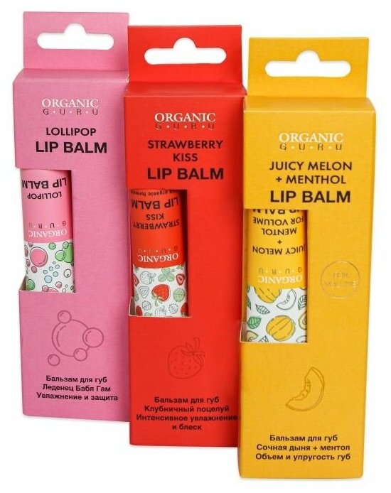 | Полное наименование | бальзам для губ organic guru strawberry kiss, 18 мл |