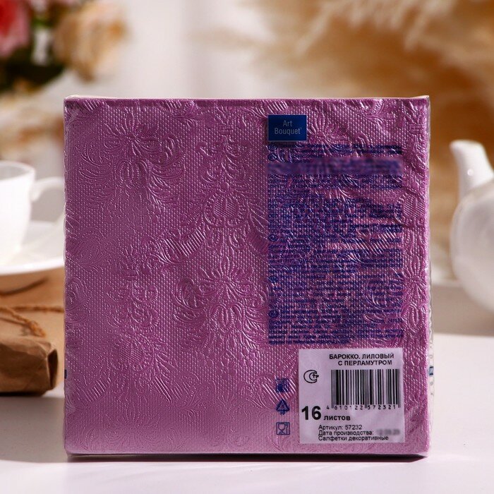 Салфетки бумажные Art Bouquet Лиловый с перламутром Барокко 33х33 3 слоя 16 листов (размер: 33 x 33 см)