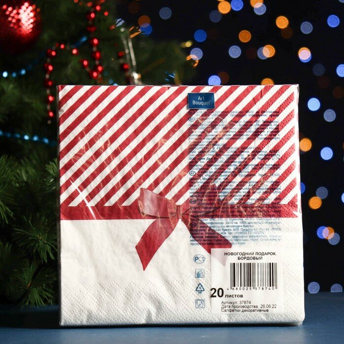 Салфетки Art Bouquet Новогодний подарок бордовый 33 х 33 см 20 шт (размер: 33 x 33 см)