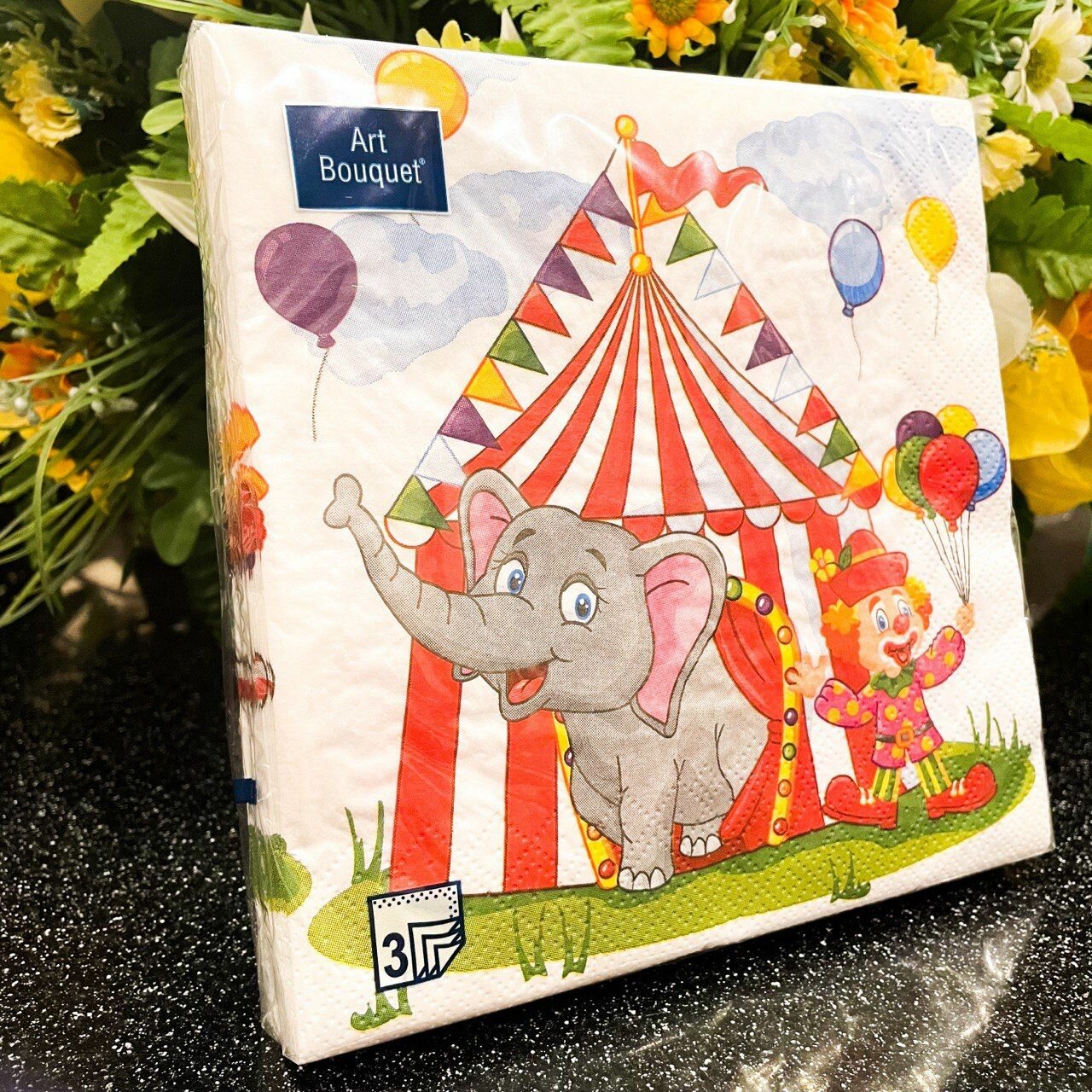 Салфетки бумажные Art Bouquet Цирк 3 слоя 33 х 33 см 20 шт (размер: 33 x 33 см)