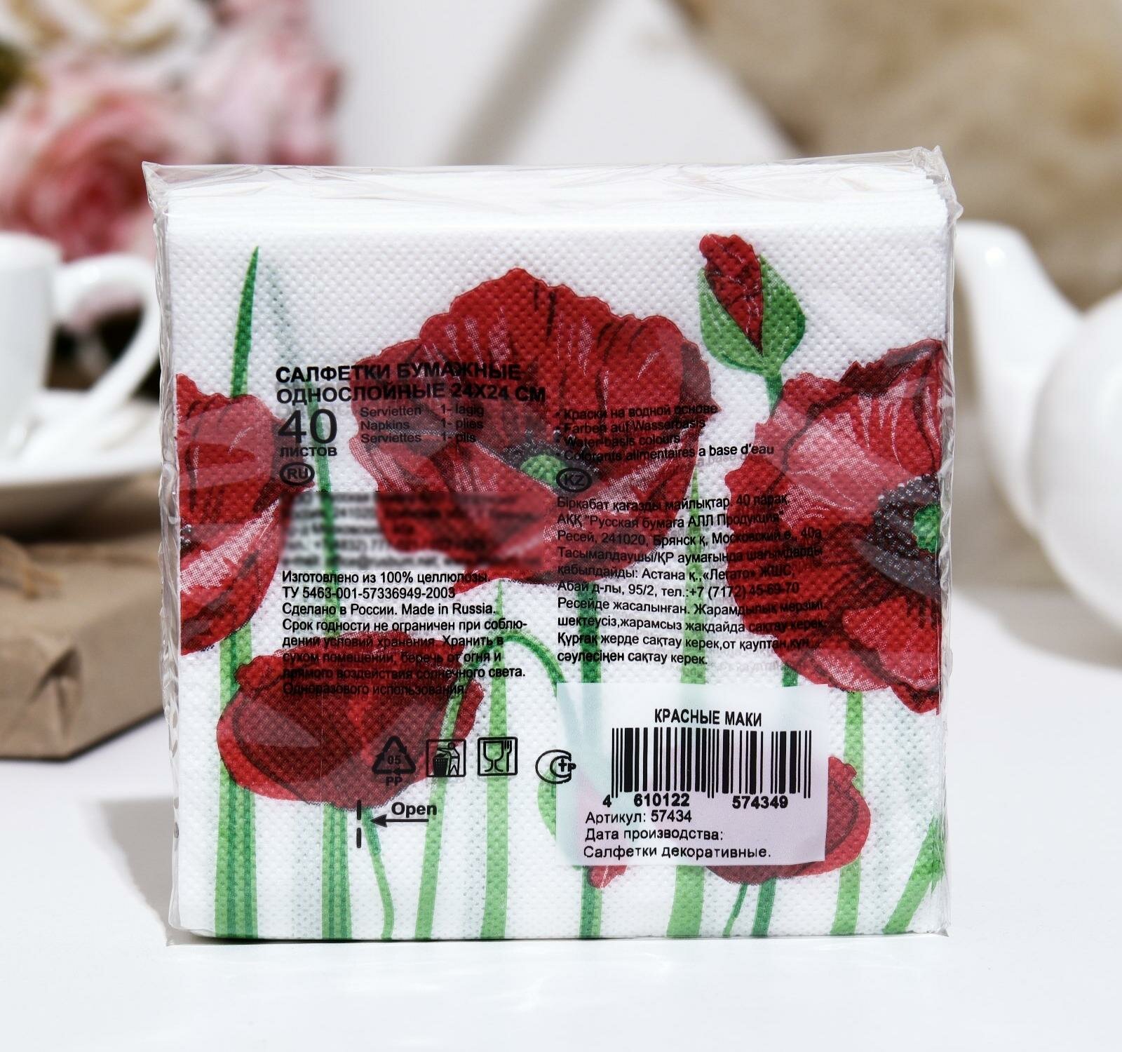 На сегодняшний день товар «Салфетки бумажные Art Bouquet Красные маки 1 слоя 24 x 24 см 40 шт. Desna design» можно купить с кешбеком в 1 магазине: Яндекс.Маркет