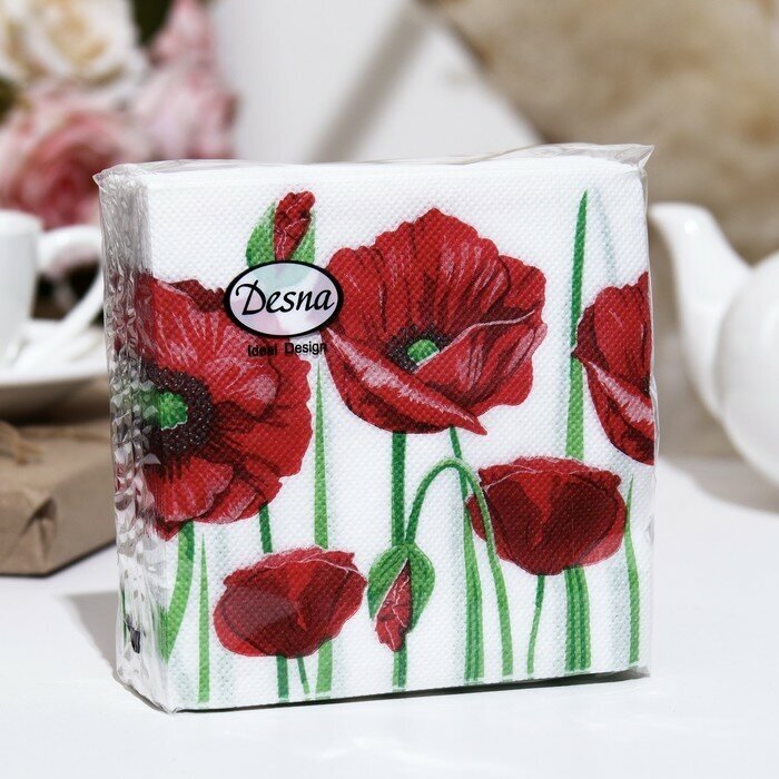 Сервис сравнения цен СкидкаГИД предлагает сравнить цены на товар «Салфетки бумажные Art Bouquet Красные маки 1 слоя 24 x 24 см 40 шт. Desna design»