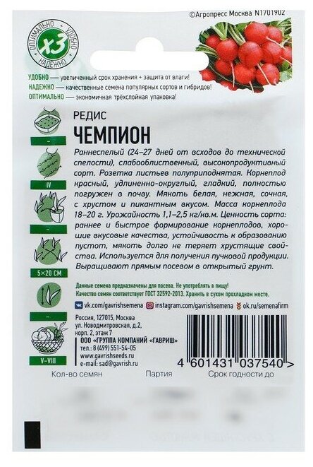Сервис сравнения цен СкидкаГИД предлагает сравнить цены на товар «Семена Редис "Чемпион" 2 г ГАВРИШ»