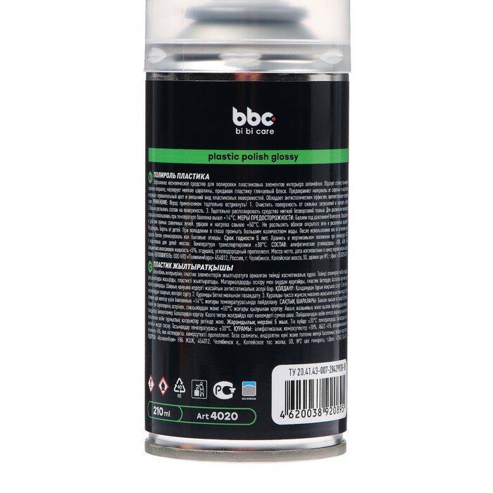 | Особенности | 1. Придает блеск и обновляет пластиковые элементы салона; 2. Образует защитное покрытие; 3. Эффект заметен до 2 месяцев; 4. Маскирует царапины. |