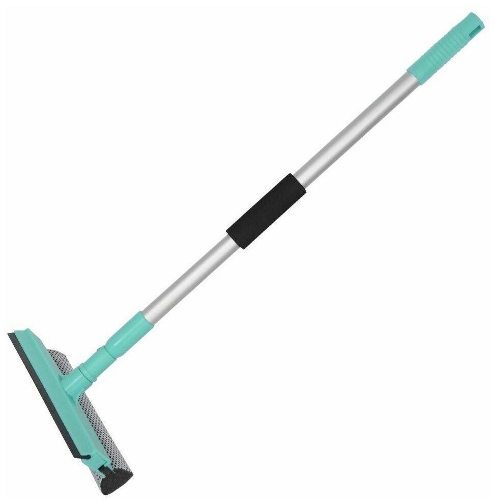 Швабра оснащена с одной стороны поролоновой губкой, с другой - сгоном для воды.Поролоновой губкой, при помощи моющих средств, Вы удалите любые загрязнения с поверхности стекла, а сгон для воды не даст оставить Вам разводов.Телескопическая ручка: 96 см.