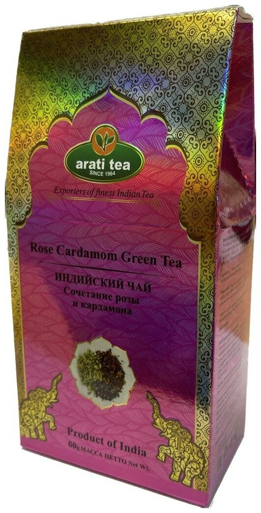 | Состав | Индийский зеленый байховый листовой чай с розой и кардамоном. |