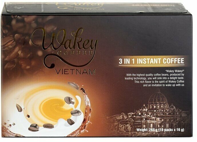 Растворимый кофе 3 в 1 WAKEY 288 г/коробка (18 пачек по 16 г.) 372015