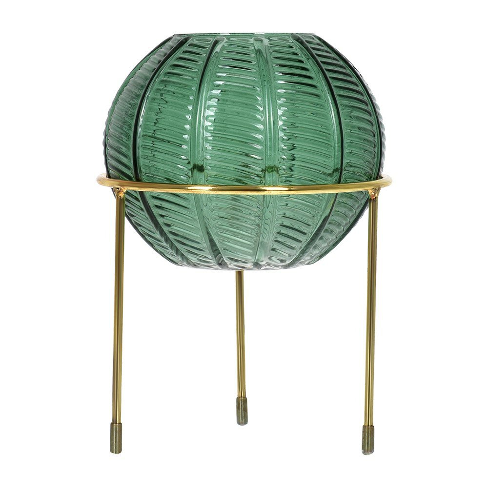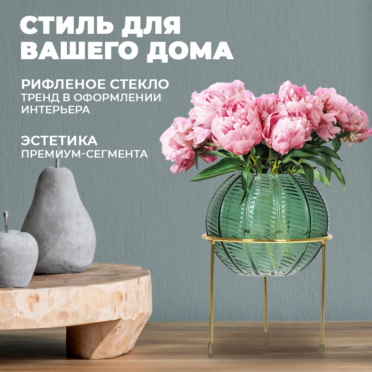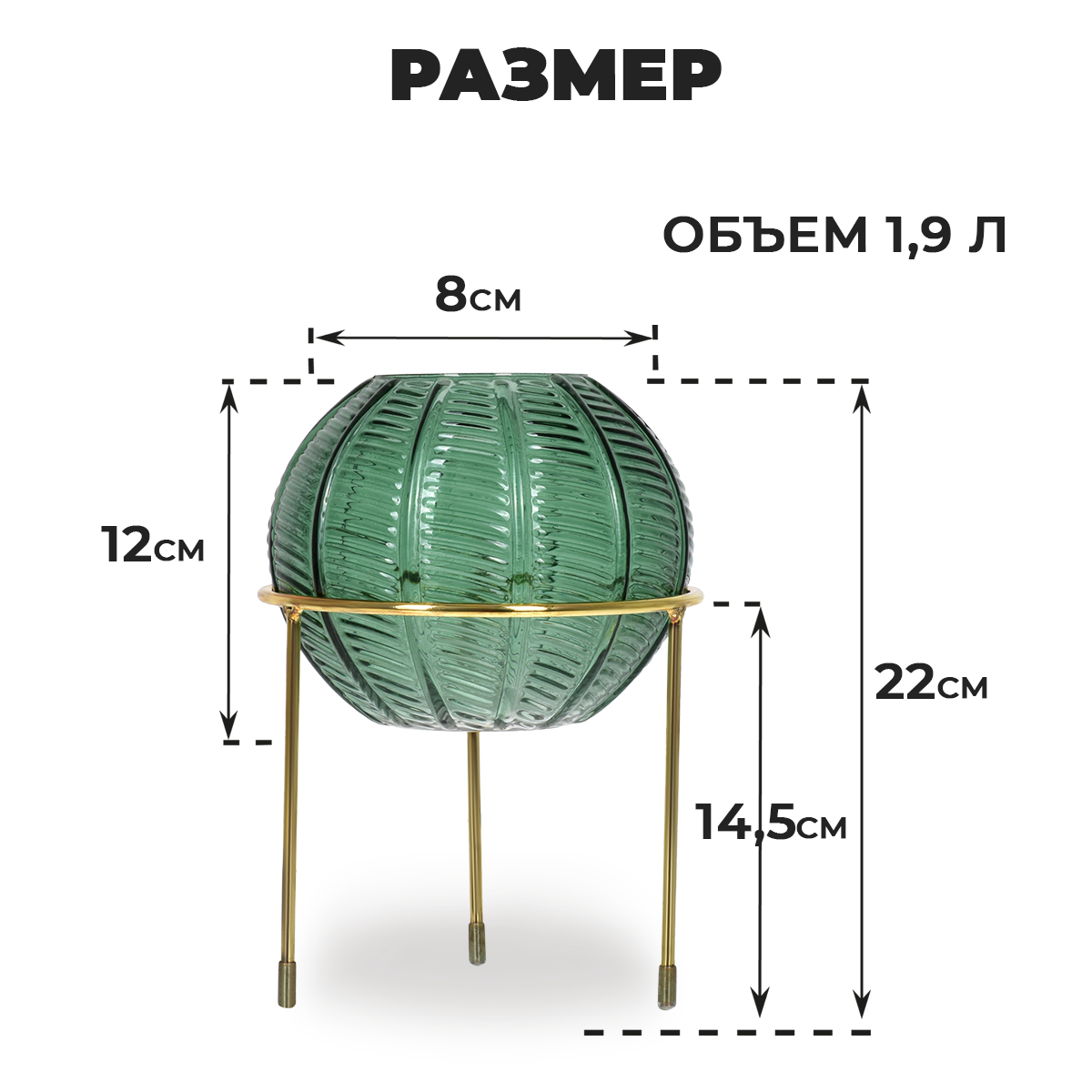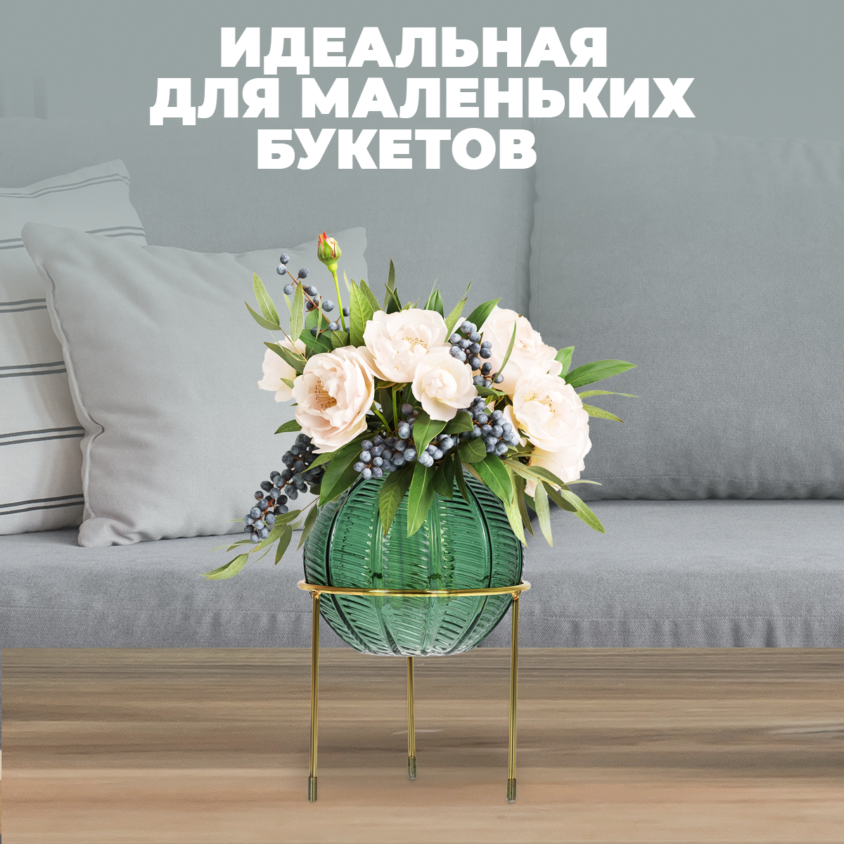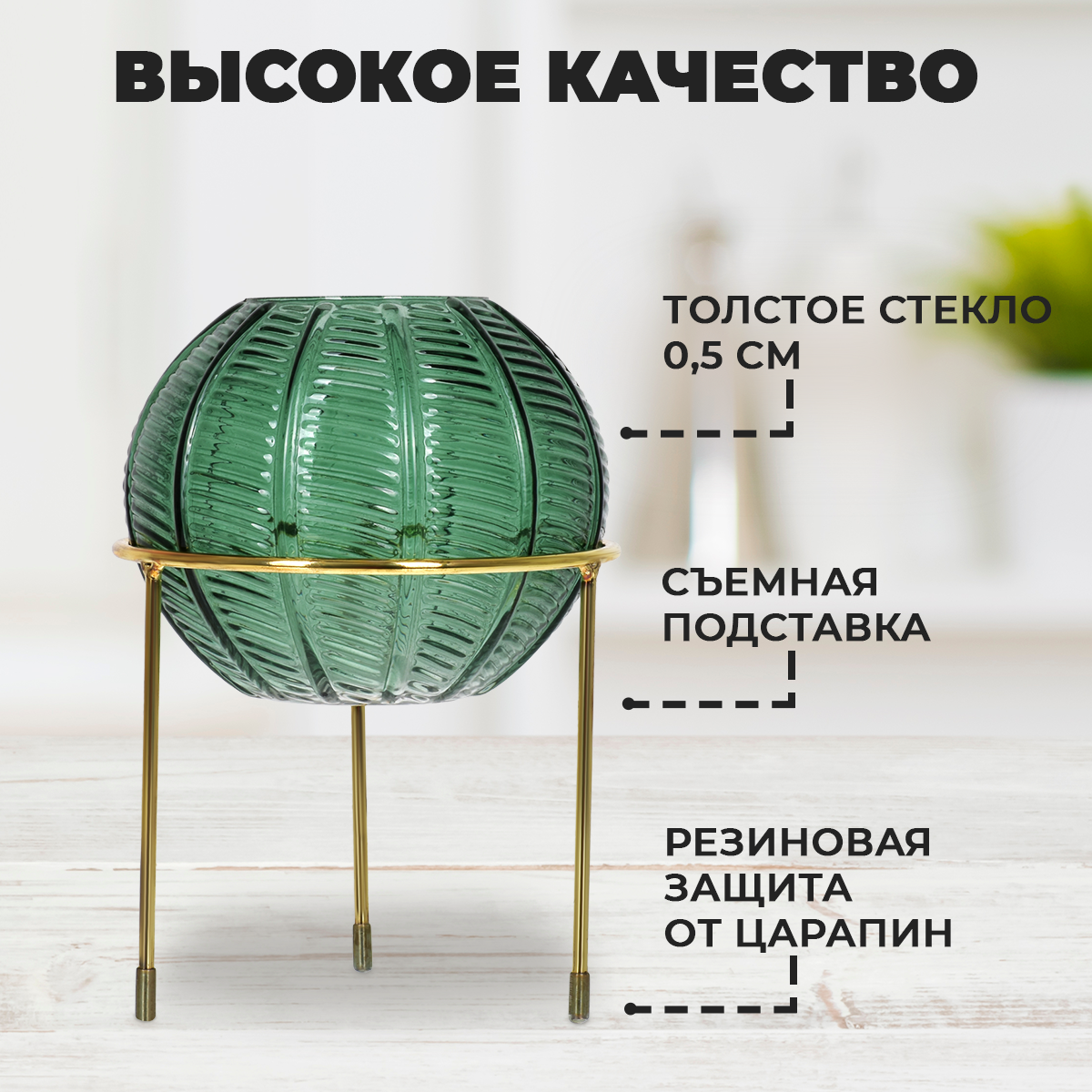 Ваза стеклянная круглая "Irida" на глянцевой подставке 15*22 см изумрудная Qwerty 73878