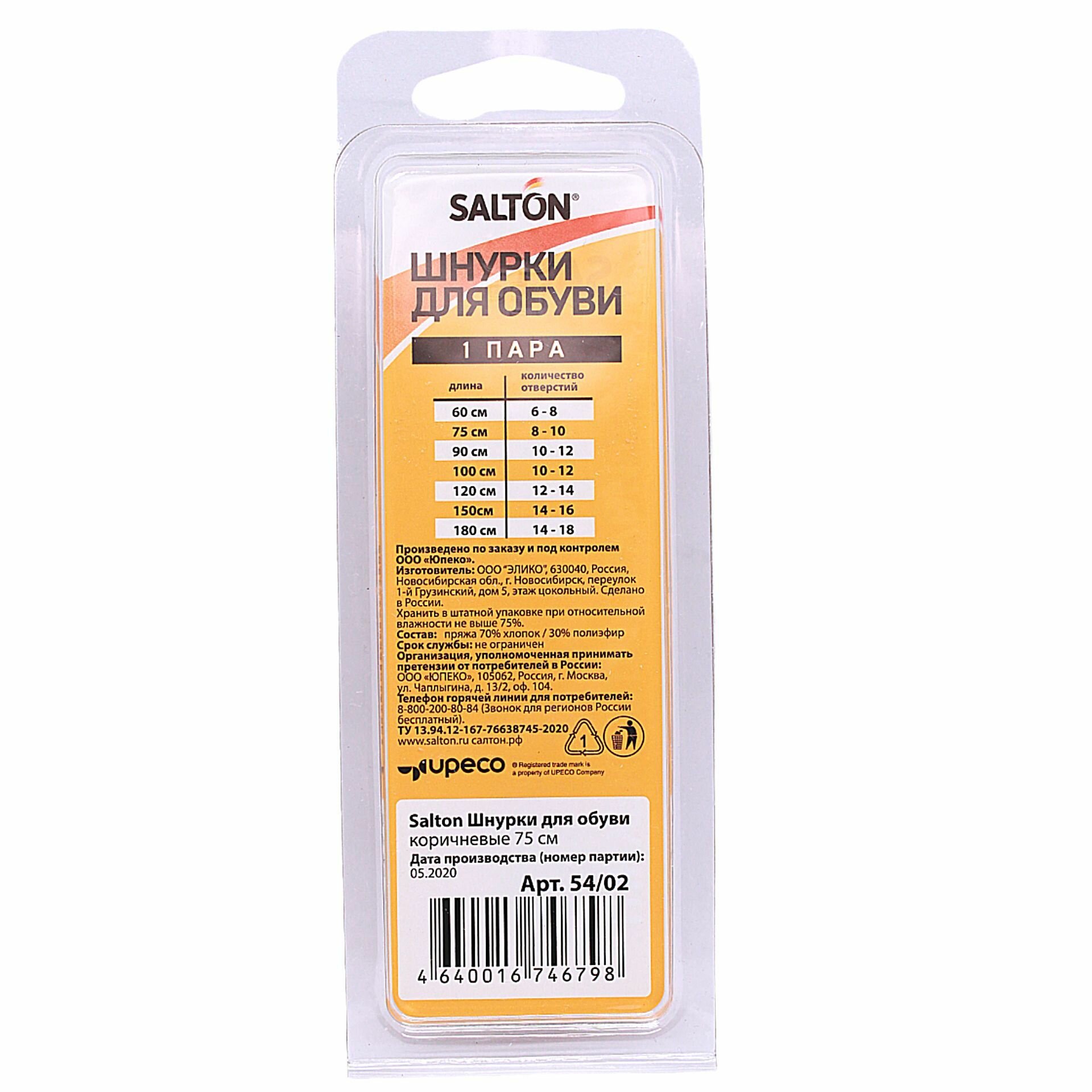 На сегодняшний день товар «Шнурки для обуви Salton коричневые 75 см» можно купить с кешбеком в 1 магазине: Яндекс.Маркет