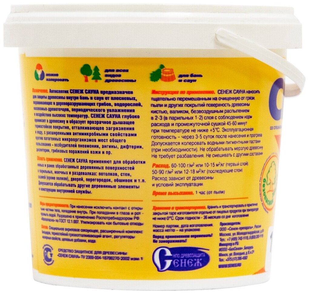 | Состав | водоразбавляемый защитный состав на термостойкой акрилатной основе с добавлением устойчивых к нагреванию биоцидов и специальных восков |