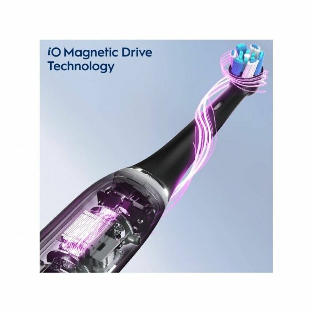 iO — лучшая технология чистки зубов от Oral-B — сочетает в себе мягкую энергию микровибраций и рекомендованную стоматологами круглую насадку Oral-B с первым в мире плавным магнитным приводом.Удивительно плавная и тихая чистка зубов. Лучшая чистка Oral-B с первого дня.Удаляет на 100 % больше зубного налёта по сравнению с обычной ручной зубной щёткой. На 100% более здоровые десны за 1 неделю.Рекомендованная стоматологами специальная круглая головка щётки превосходно чистит с помощью микровибраций и колебаний. Щетинки с перекрестной щетиной, расположенные под углом 16 градусов, удаляют больше налета, обеспечивая максимальную чистоту. * по сравнению с ручной зубной щеткой.Интеллектуальный датчик давления показывает красный свет при слишком сильной чистке и зеленый свет при правильной чистке.Более 4000 волокон для гладкой, но эффективной чистки. Внешние щетинки — самые тонкие и нежные щетинки Oral-B, защищающие ваши зубы и десны. Микровибрации. Разработанная со стоматологами круглая насадка профессионально очищает с помощью технологии возвратно-вращательных движений и микровибраций. Защита десен. Умный датчик давления сигнализирует красным световым сигналом о чрезмерном надавливании и зеленым — о правильной чистке. Персонализация. Интерактивный дисплей отображает и позволяет выбирать между 4 режимами чистки, информацию об износе сменной насадки и 2-минутный таймер, обеспечивая уникальную персонализированную процедуру чистки. Инновационная. iO сочетает в себе уникальную круглую насадку Oral-B с бережной энергией очищения микровибрирующих щетинок.
