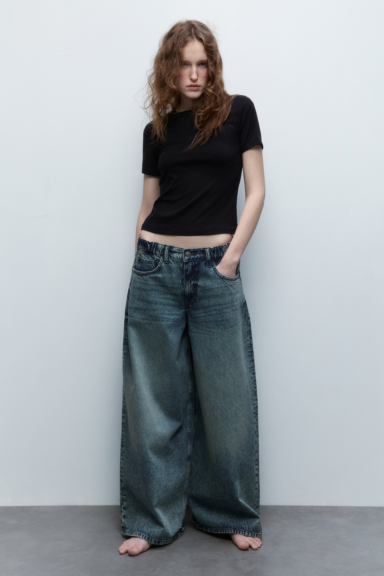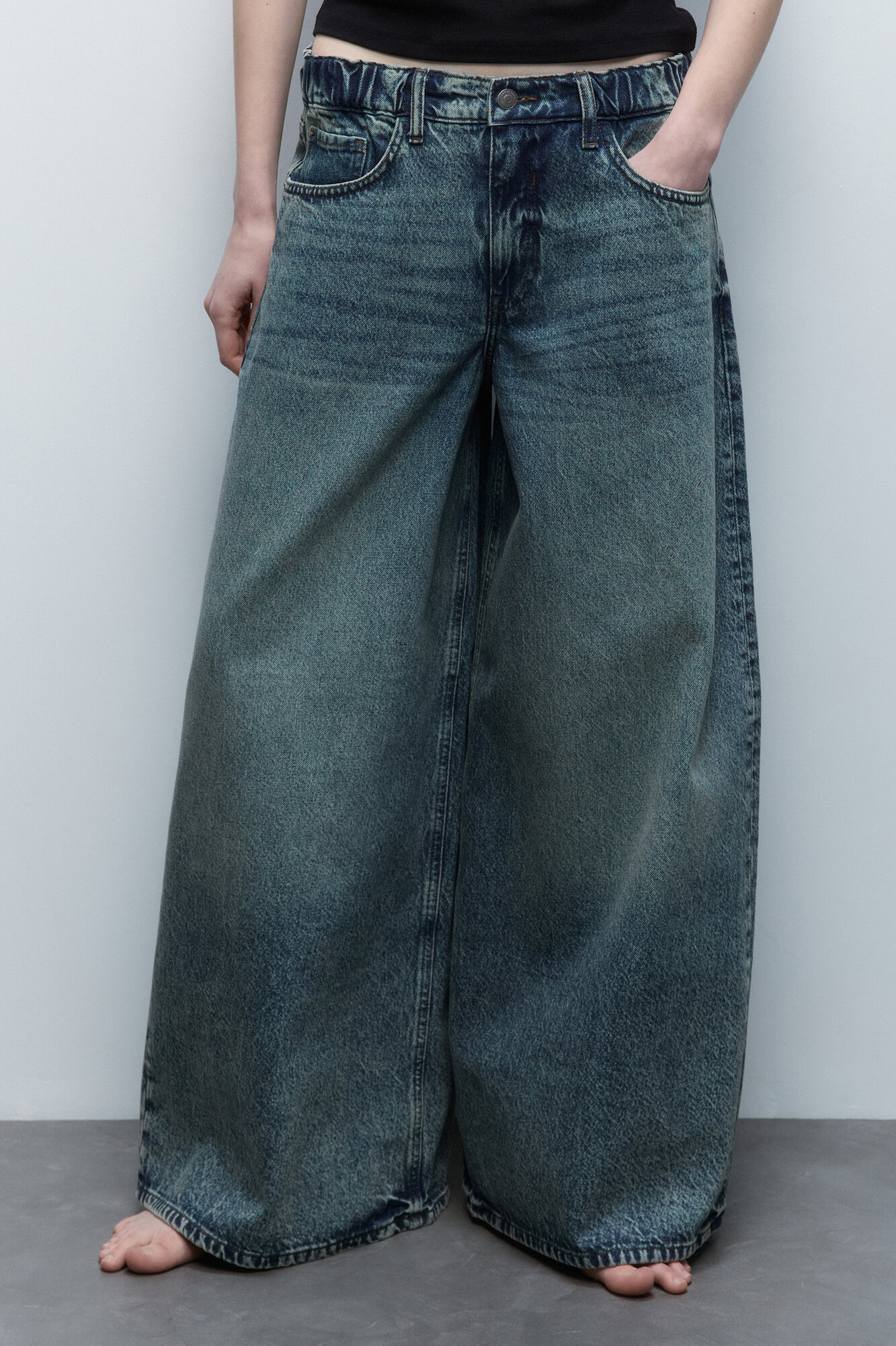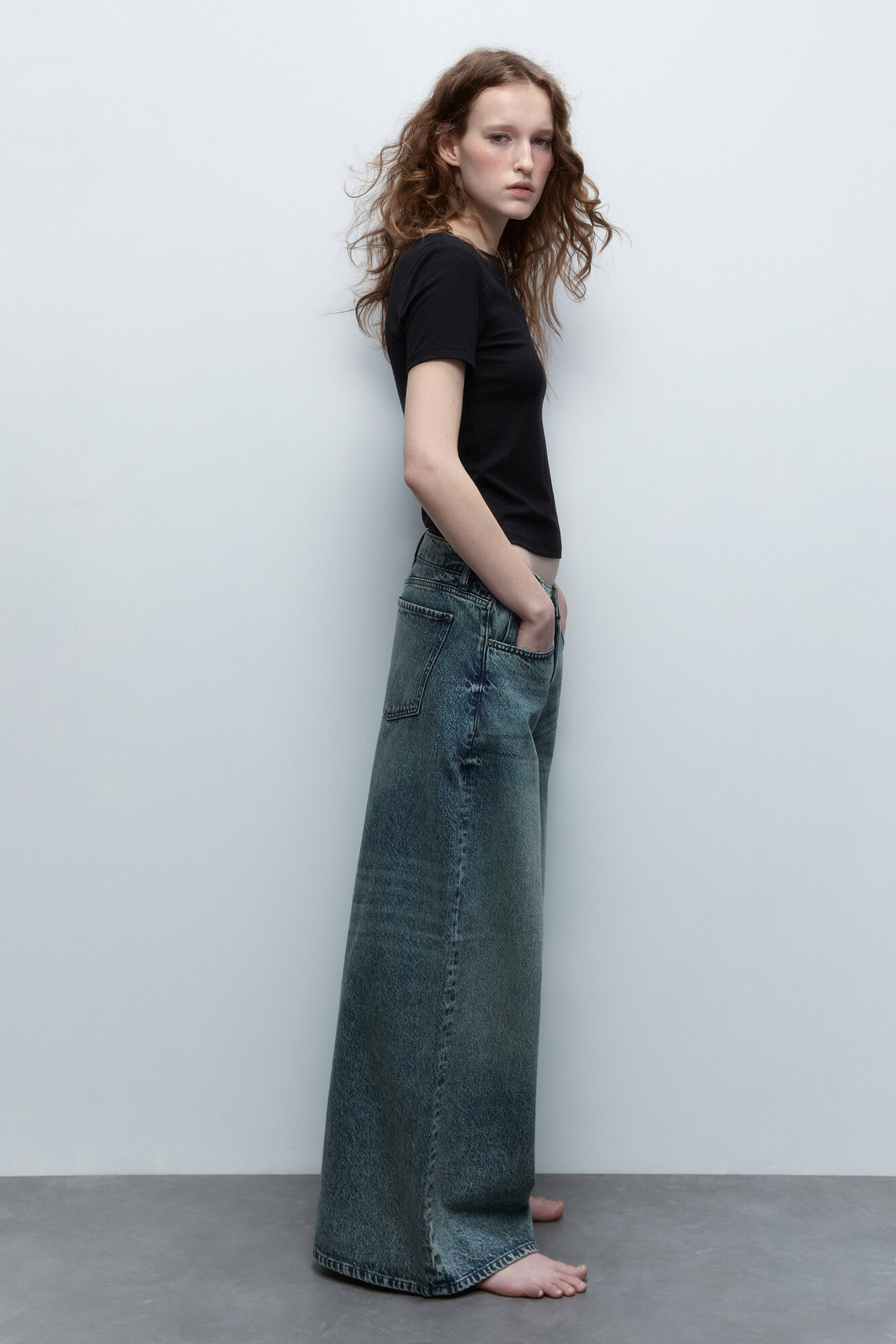 - Джинсы экстраширокие с низкой посадкой. Суперширокие женские джинсы-трубы wide leg из легкого, плотного хлопкового денима