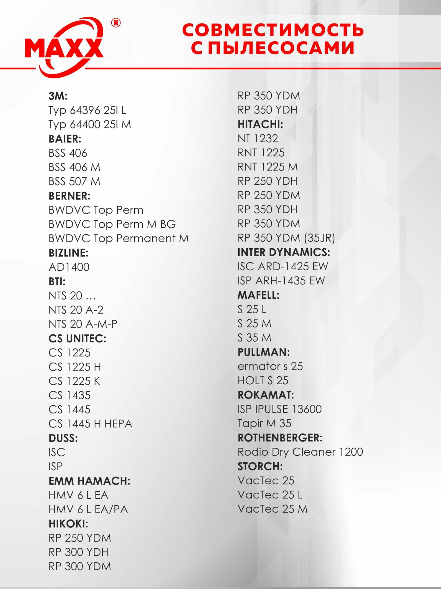 | Подходит для Hitachi | да |