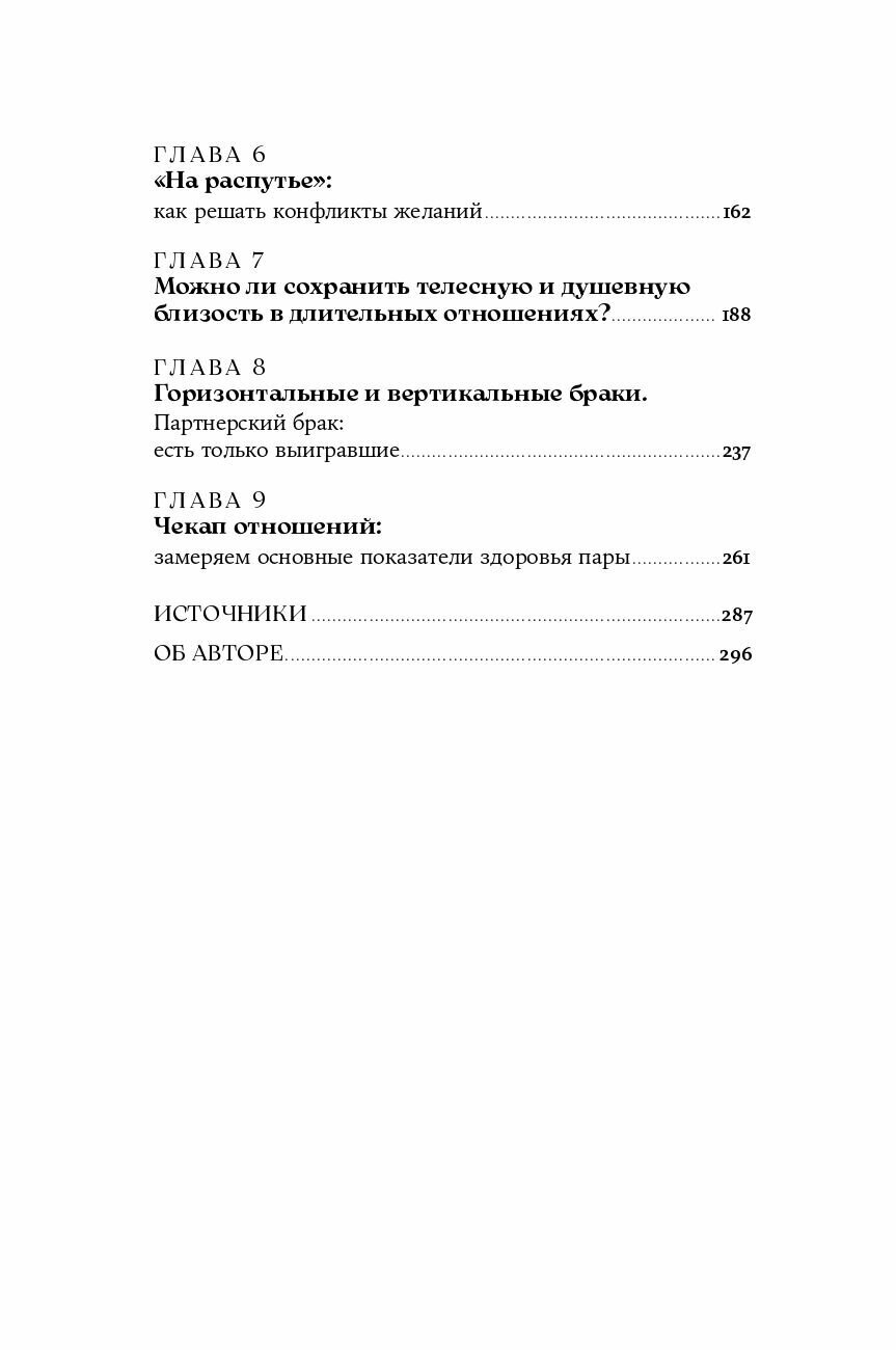 Поднимает важные вопросы, а нужна ли любовь, что делать с конфликтами желаний (между любовью и сексом, любовью и отношениями) можно ли сохранить близость – и телесную, и душевную – в длительных отношениях, кому партнерский брак подходит, а кому не подходит, какие есть варианты, если отношения хорошие, но что-то все же не устраивает, и они перестают радовать, предложит подход, который устроит всех (серийная моногамия).