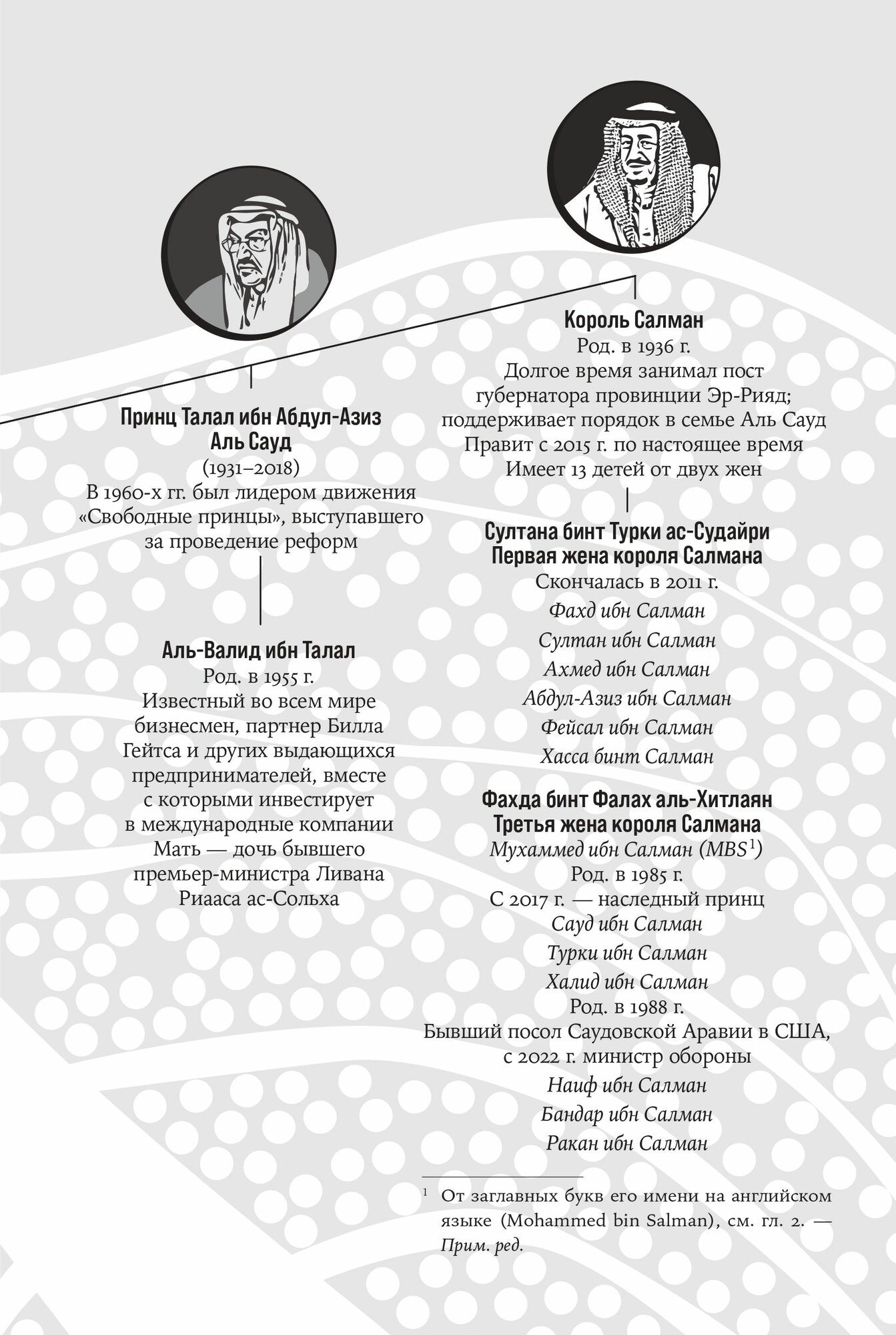 Книга двух известных журналистов-расследователей The Wall Street Journal, много лет освещавших события на Ближнем Востоке, читается как настоящий триллер. Она посвящена наследному принцу Саудовской Аравии Мухаммеду ибн Салману Аль Сауду — фактическому правителю страны, прошедшему путь от скромного, замкнутого любимца отца-короля, до лидера, с которым вынуждены считаться главы крупнейших мировых держав.