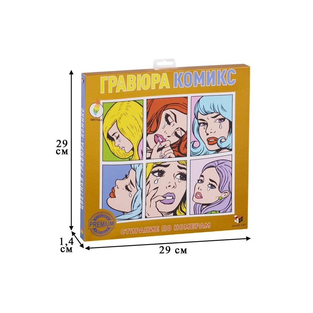 Гравюра Комикс - необычная «раскраска» для всех тех, кто неравнодушен к искусству во всех его проявлениях. Вашей кисточкой будет штихель, а холстом - гравюра со специальным покрытием, элементы которого пронумерованы. Шаг за шагом, цифра за цифрой вы будете стирать слой, создавая красивую гравюру, которая сможет украсить домашний интерьер или станет необычным подарком для друзей.