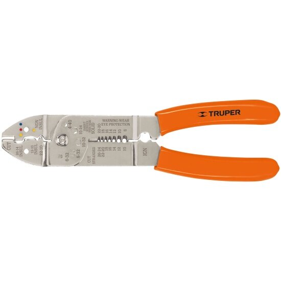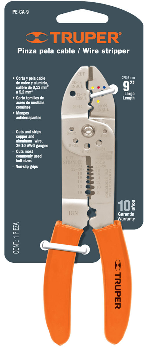 Truper PE-CA-9 - инструмент для зачистки и обрезки проводов. Инструмент изготовлен из специальной стали и имеет защитное покрытие. Рукоятки выполнены из мягкого и удобного для хвата материала. Данная модель подходит для проводов разного сечения.