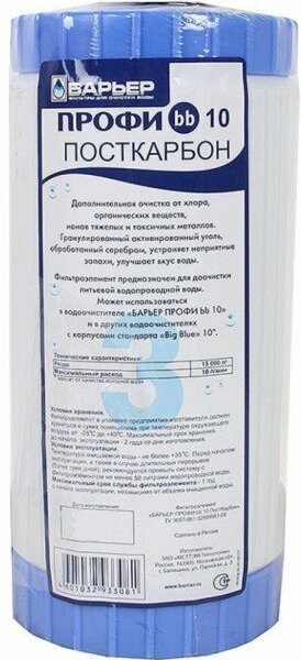Фильтр для воды Барьер ПРОФИ BB 10 Посткарбон