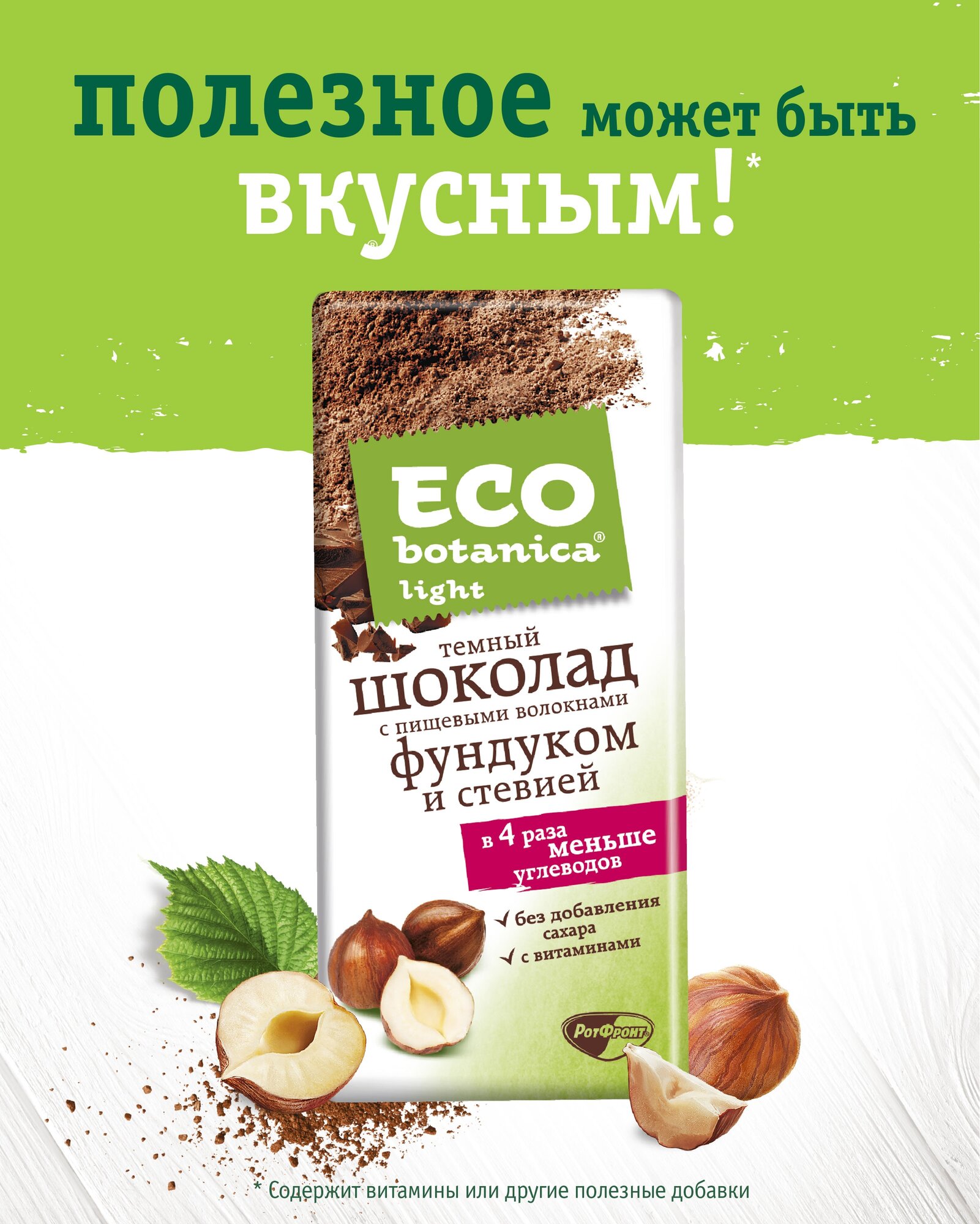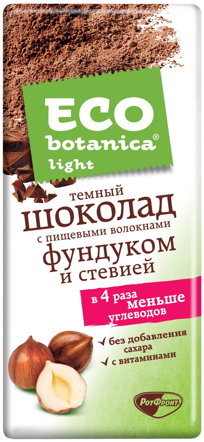 Шоколад Eco-botanica Light темный с фундуком без сахара 90 г