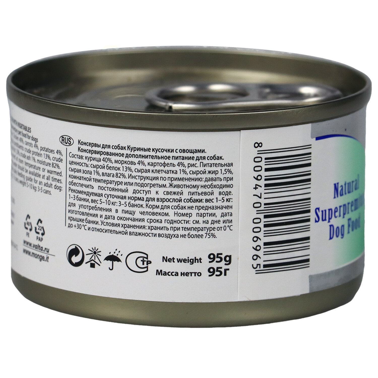 Monge Dog Natural консервы для собак (кусочки) (Курица и овощи 95 г.)