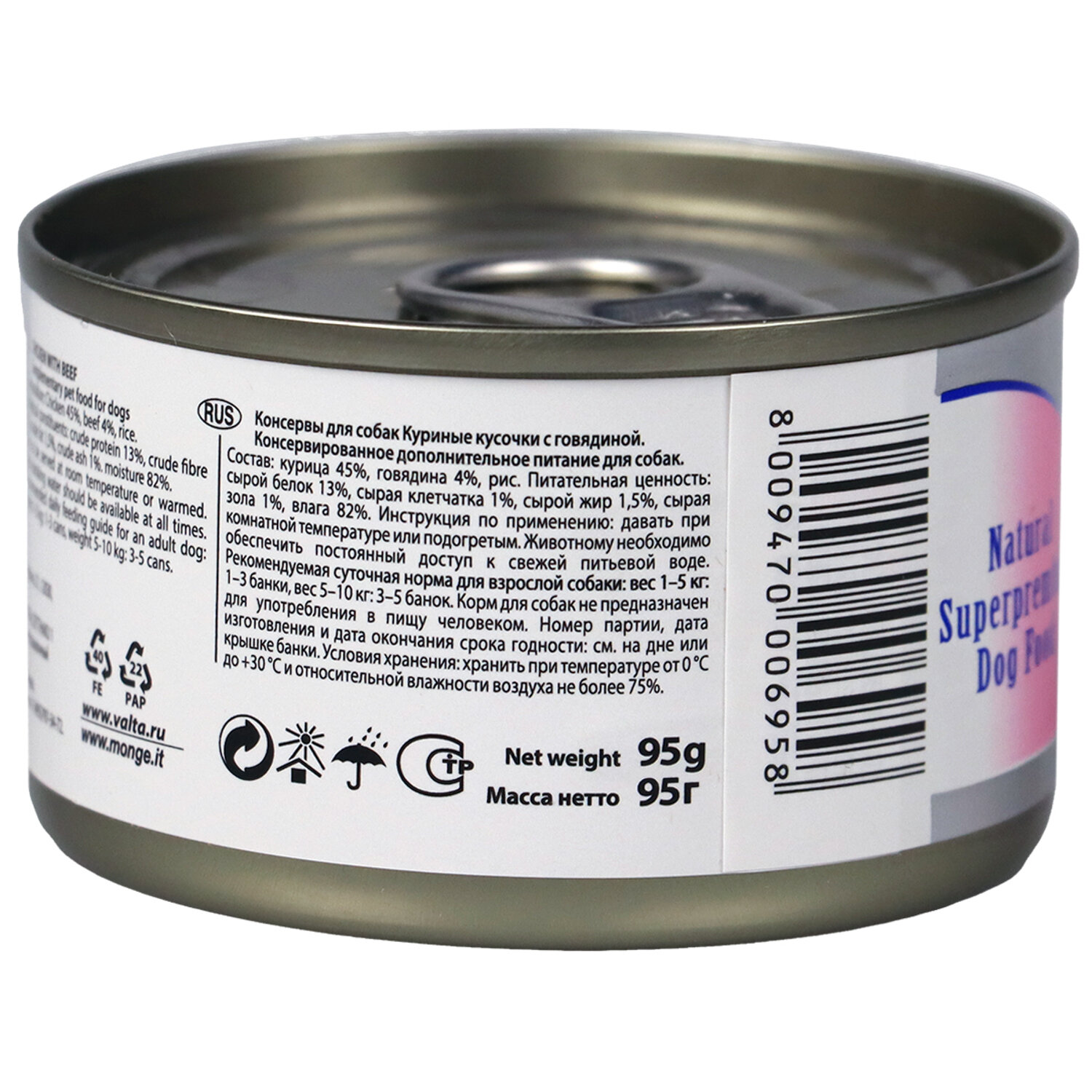 Сервис сравнения цен СкидкаГИД предлагает сравнить цены на товар «Monge Dog Natural консервы для собак (кусочки) (Курица и говядина 95 г.)»