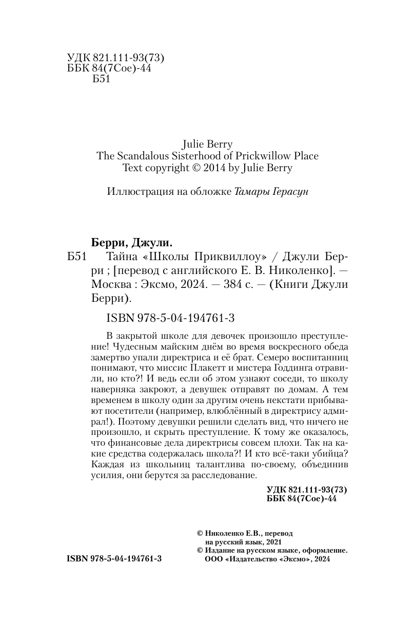 Тайна "Школы Приквиллоу" (новое оформление) (Берри Джули); ООО "Издательство "Эксмо", 2024