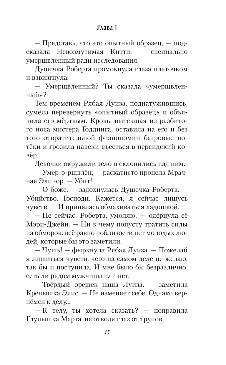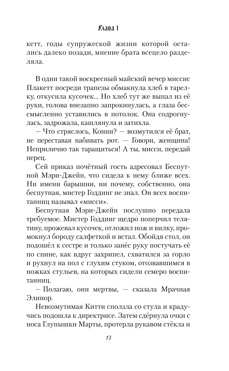 1200 отзывов на сайте Гудридз! Эта книга переведена на несколько европейских языков и везде пользуется огромным успехом. Действие происходит в закрытой школе-интернате для девочек. Во время обеда замертво падает директриса и её брат. Семь воспитанниц остаются без попечителей и готовы пойти на всё, чтобы не возвращаться домой, а жить одним в пансионе.