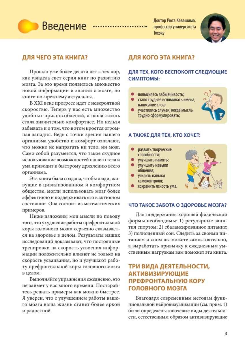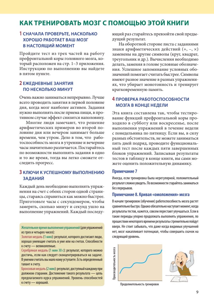 Не получается быстро сформулировать мысль? - Хотите развить творческие способности? - Хотите сохранить ясность ума? Мозг, как и тело, дряхлеет, если не заставлять его тренироваться, поэтому если ввести привычку заниматься каждый день, можно предупредить развитие деменции. Циклы упражнений на простые вычисления и чтение вслух, предложенные в этой тетради Рютой Кавашима, ученым с мировым именем в области нейронауки, стимулирует работу как правого, так и левого полушария мозга. Это подтверждается многочисленными исследованиями. Начните тренировки мозга прямо сегодня!