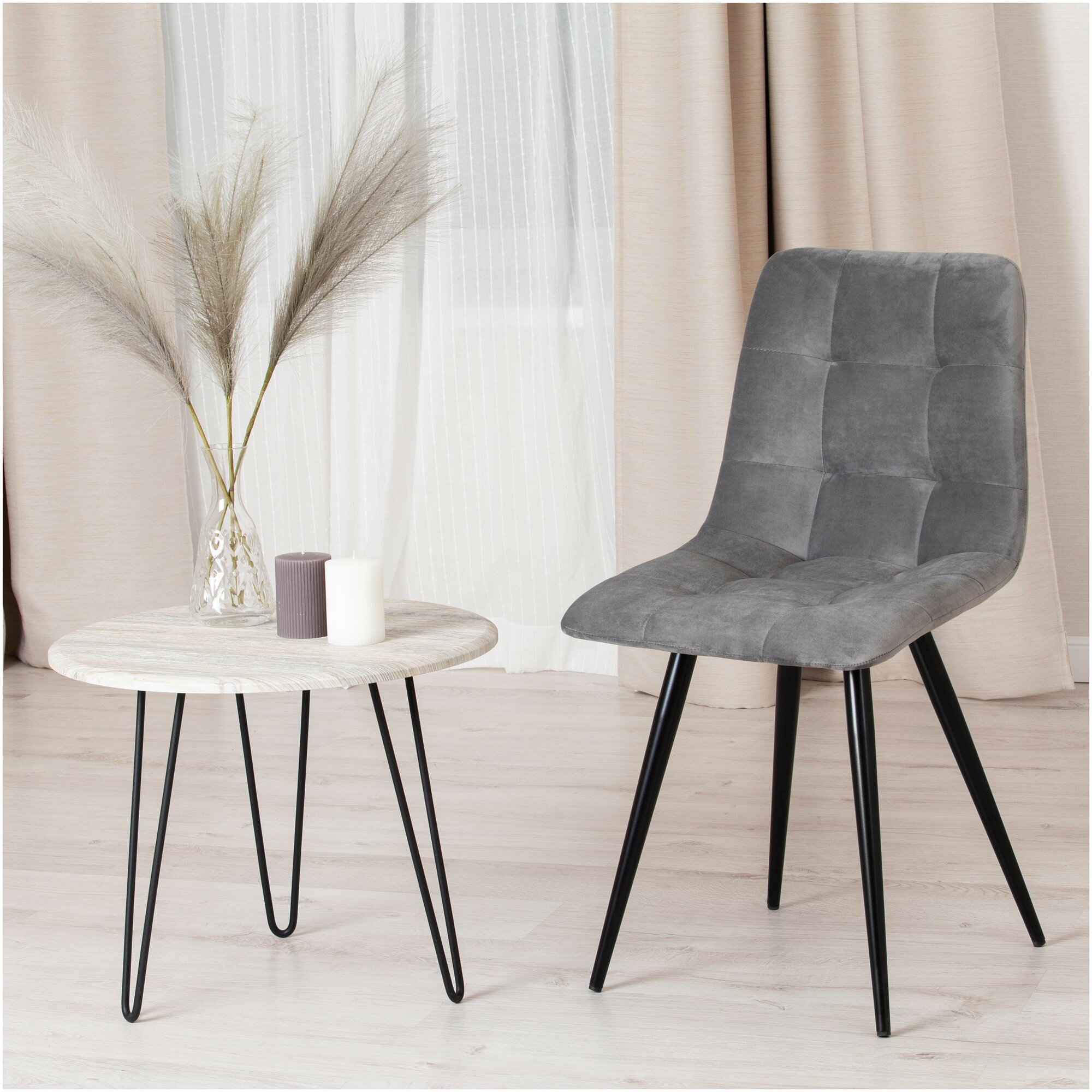 Удобный и практичный дизайн стула CHILLY из коллекции Modern позволит ему вписаться практически в любой интерьер. Стул можно расположить в гостиной, кухне или столовой. Он хорошо подойдет для обстановки городской квартиры, загородного дома, кафе или ресторана. Тонкие металлические ножки с порошковым покрытием, стеганая тканевая обивка и лаконичные формы стула идеально соответствуют концепции современного стильного пространства. Мягкое сиденье и спинка позволяют комфортно расположиться на длительное время. Практичная тканевая обивка серого цвета отличается устойчивостью к износу и долговечностью, благодаря чему стул не требует специального ухода и будет долгое время радовать вас своим первоначальным видом. Монолитный каркас изделия выполнен из многослойного гнутоклееного шпона толщиной 10 мм. Наполнение - комбинация пенополиуретанов различной плотности. Стул подойдёт для гостиной, для кухни, для спальни, для ресторана или для кафе. Стул очень прост в сборке, инструкция по сборке прилагается