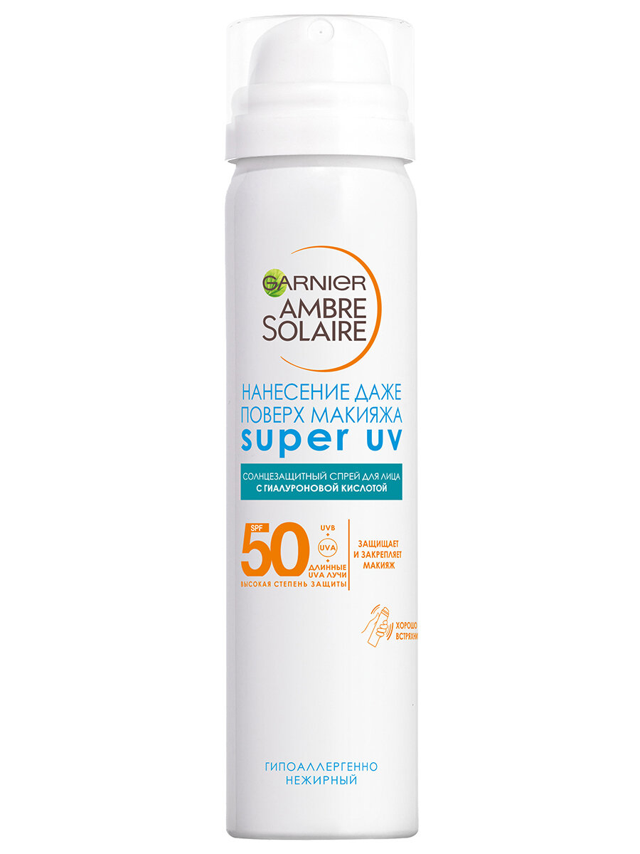 Разработанный специально для чувствительной кожи лица солнцезащитный спрей Ambre Solaire SPF 50+ с витамином Е и гиалуроновой кислотой