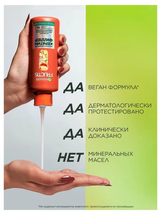 | Эффект | восстановление; для объема; легкость расчесывания; питание; придание блеска; против секущихся кончиков; разглаживание; смягчение; термозащита |