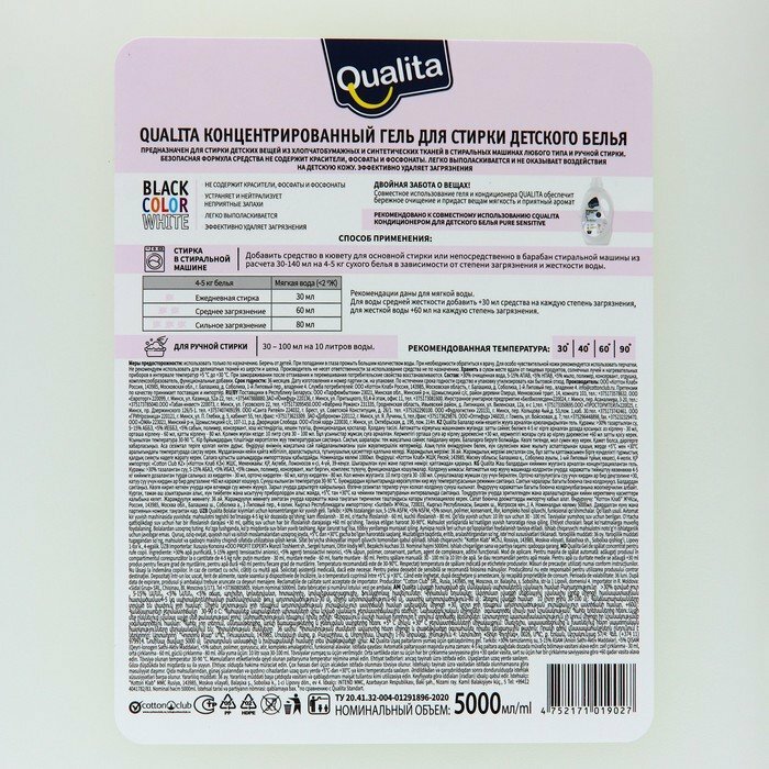 Гель для стирки детского белья 5000 мл QUALITA - это идеальное решение для тех, кто ценит высокие очищающие способности при стирке детской одежды. Выбирая этот гель, вы можете быть уверены, что детская одежда будет безупречно чистой и мягкой для нежной кожи вашего малыша.