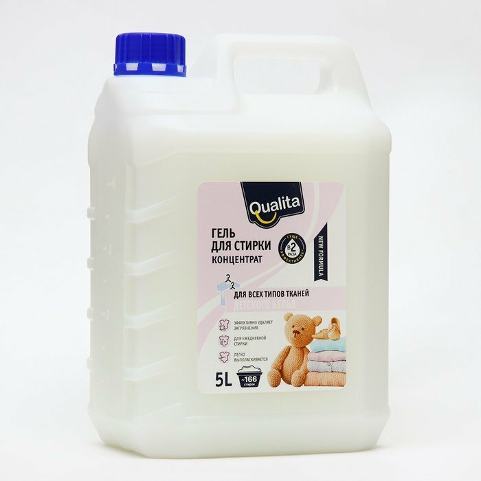 Гель для стирки детского белья QUALITA также отличается экономичностью. Небольшое количество геля достаточно для получения отличных результатов стирки. Одна упаковка продукта может использоваться на протяжении длительного времени, что делает его экономически выгодным выбором для родителей. Жидкого геля для стирки детского белья объемом 5 литров хватает в среднем на 125 стирок, в зависимости от степени загрязненности детской одежды.