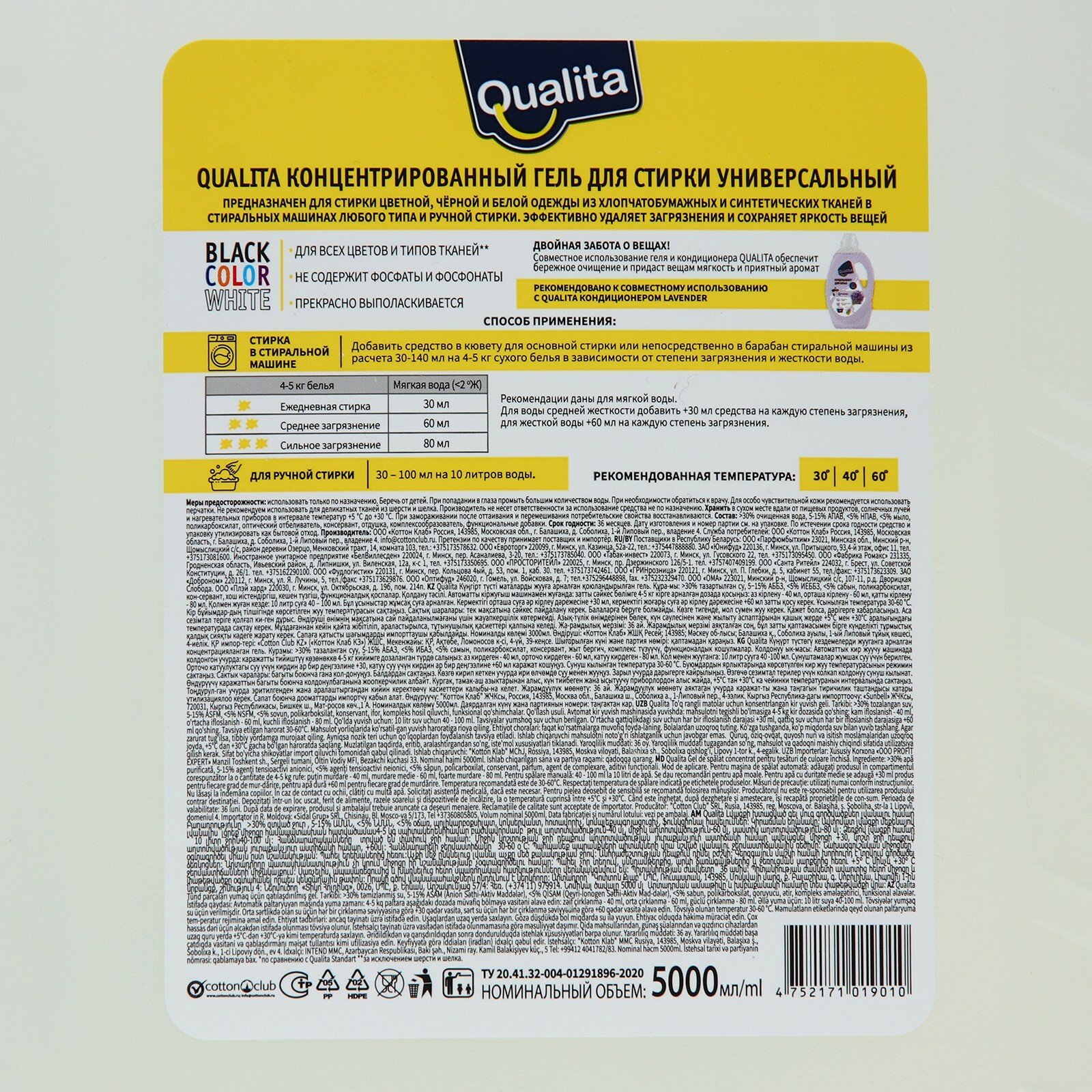 Гель для стирки 5л Универсальный QUALITA - это отличное решение для тех, кто ищет универсальный стиральный порошок который обеспечит эффективную и качественную стирку для всех типов тканей, кроме шелка и шерсти. Средство для стирки 5 литров для всех типов ткани обеспечивает безупречную чистоту и сохранность вашей одежды. Универсальная формула геля обеспечит эффективную и качественную стирку ваших вещей. Жидкая консистенция порошка для стирки обеспечивает быстрое растворение в воде и более эффективную стирку. Жидкий стиральный гель полностью вымывается из волокон ткани, а значит им можно стирать без использования кондиционера. Тем не менее мы вам все же рекомендуем приобрести и кондиционер от бренда QUALITA в паре данная бытовая химия: гель для стирки 5 литров автомат + кондиционер для белья с заботой и лаской позаботятся о вещах. Средство для стирки 5 литров подходит как для черного белья, так и для цветного. Жидкий порошок для стирки одежды QUALITA имеет высокую концентрацию активных компонентов, которая обеспечивает отличное удаление пятен и загрязнений, и придает светлым вещам белизну. Подходит для ежедневной стирки. Кроме того, гель QUALITA обладает приятным, легким ароматом, который остается на вашей одежде после стирки на длительное время.