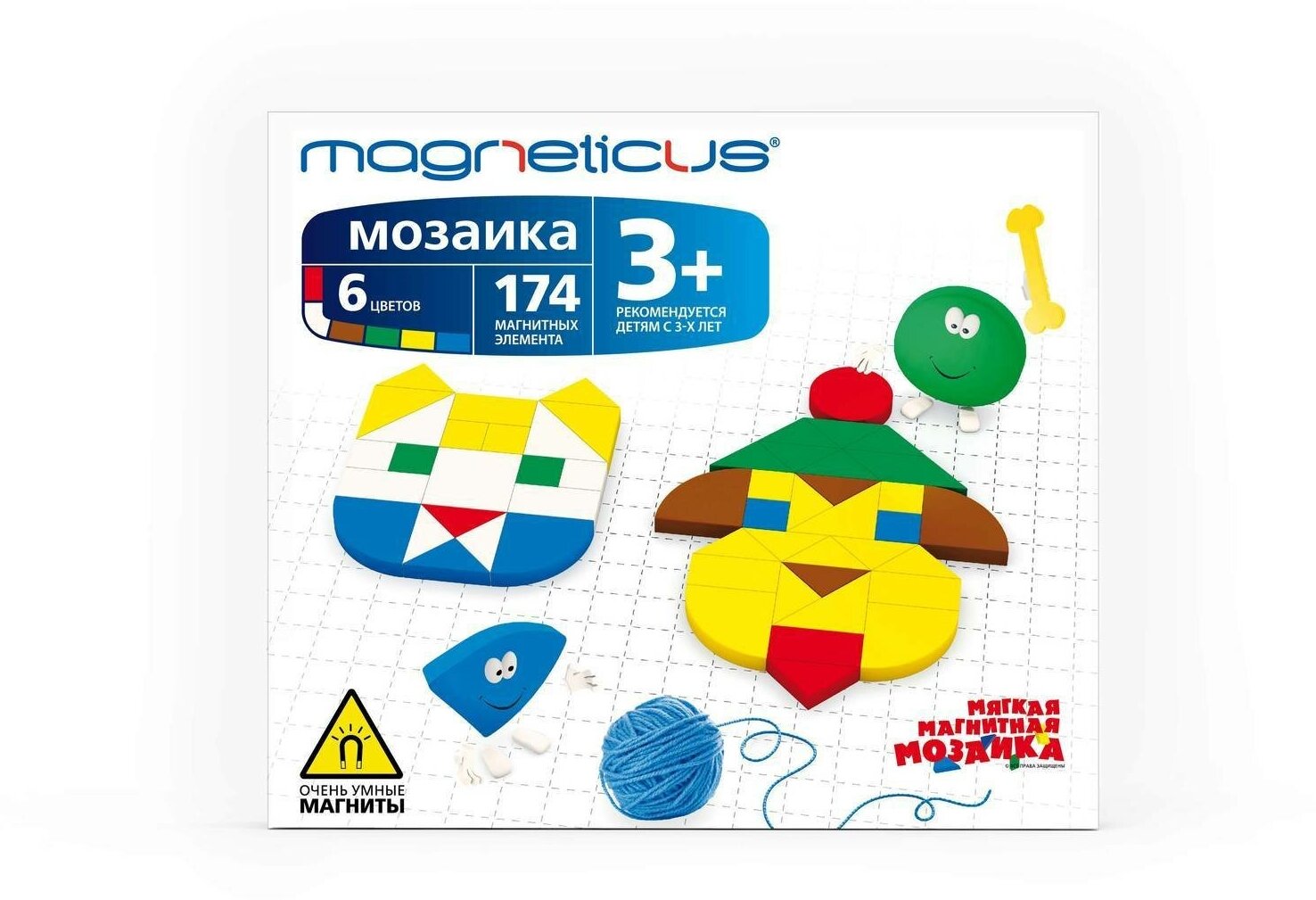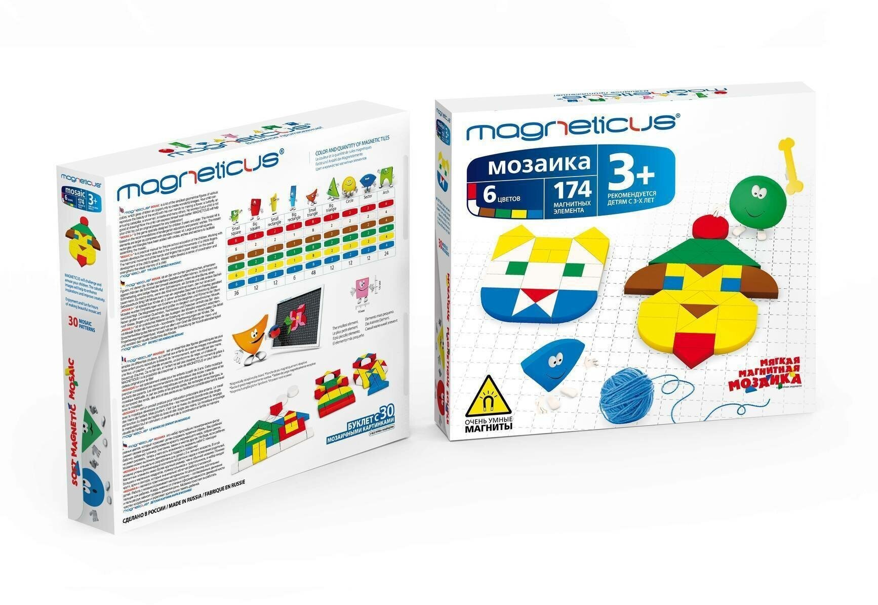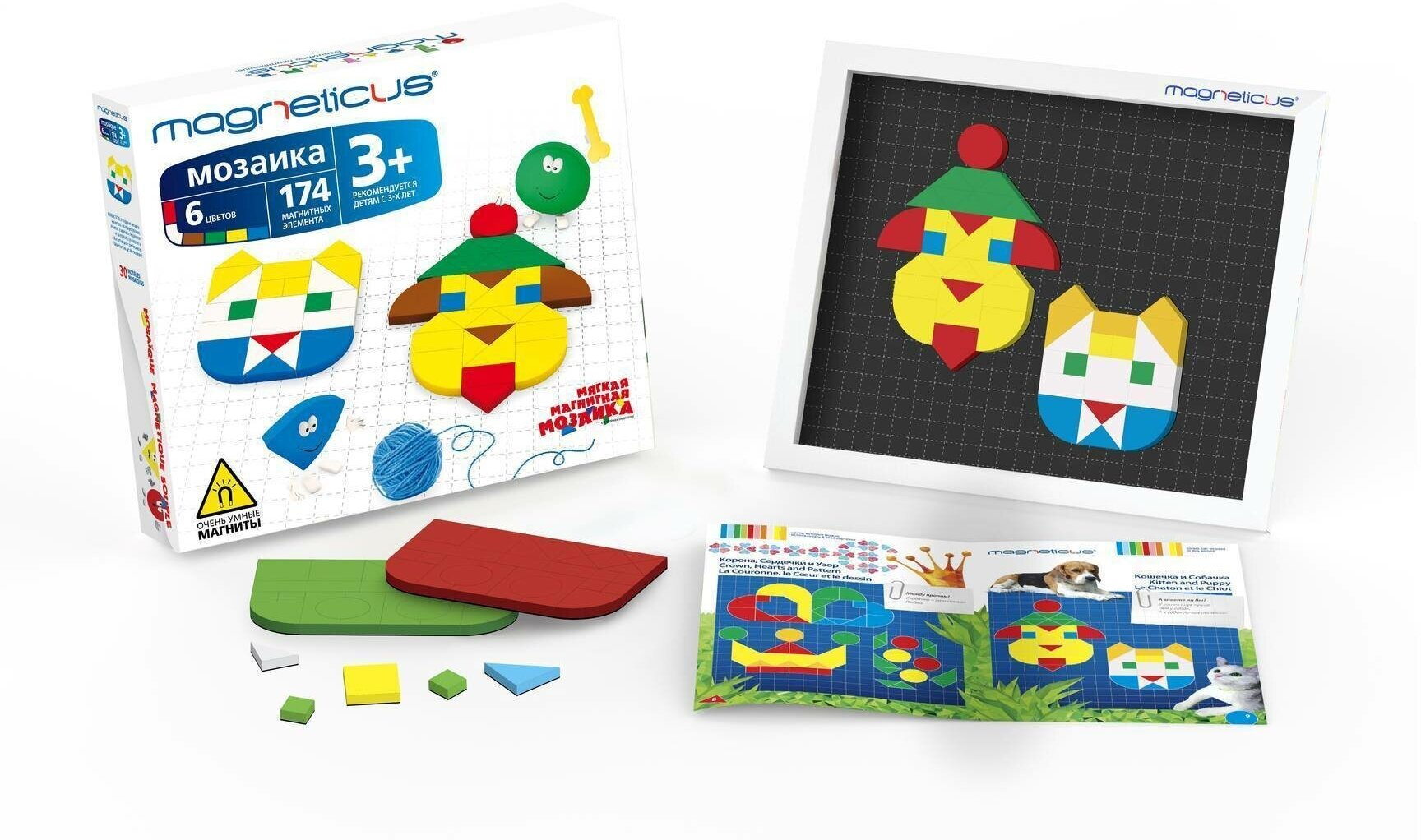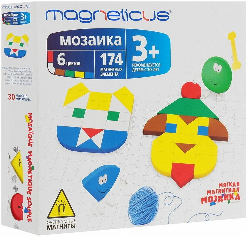 | Состав набора | 174 х Магнитных элемента 1 х Магнитное игровое поле 1 х Буклет с примерами |