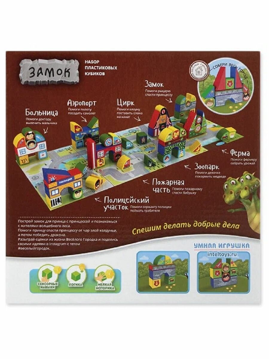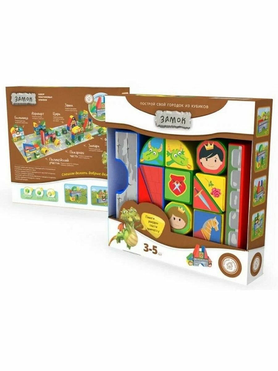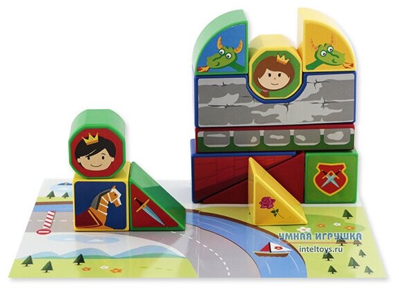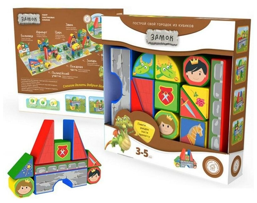 Пластиковые кубики Замок - развивающий набор, который позволит маленькому градостроителю развить культурно-досуговую сферу в своем игрушечном городке. Ему предстоит построить красивый замок, который станет местной достопримечательностью. В нем проживает настоящая принцесса, которая ждет своего ненаглядного, который должен вызволить ее из высокой башни, помоги ему в этой благородной миссии! Все кубики выполнены из высококачественного материала, который абсолютно безопасен для малыша, а их специальная форма не только удобно ложится в ручку, но и тренирует мелкую моторику рук и тактильные ощущения. В наборе есть дополнительный набор наклеек, которые приклеиваются на кубики для еще большего разнообразия игровых сюжетов. В этой серии доступны и другие комплекты с пластиковыми кубиками, соберите их все вместе для того, чтобы построить целый город!