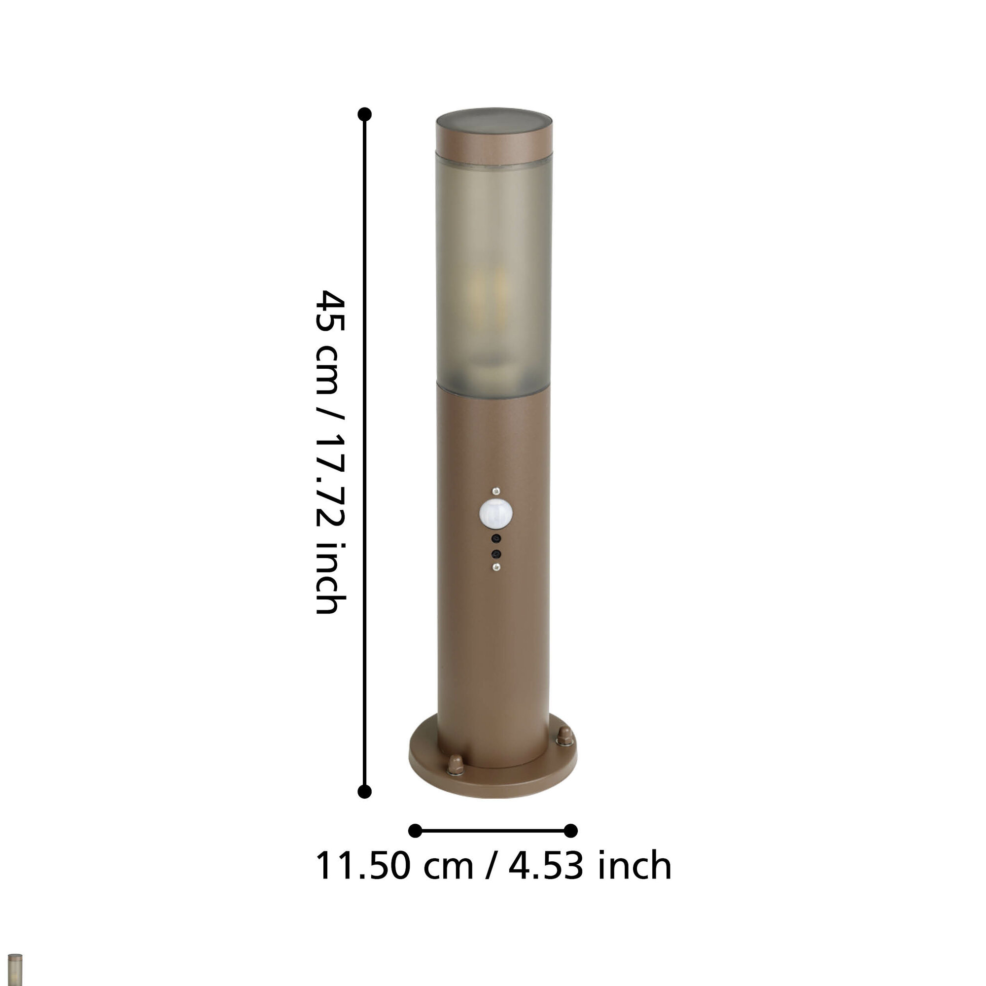 | Номенклатура | 900986 Уличный напольный светильник с датчиком движения HELSINKI, 1X15W (E27), IP44, H450, нержавеющая сталь, коричневый/пластик, черный полупрозрачны |