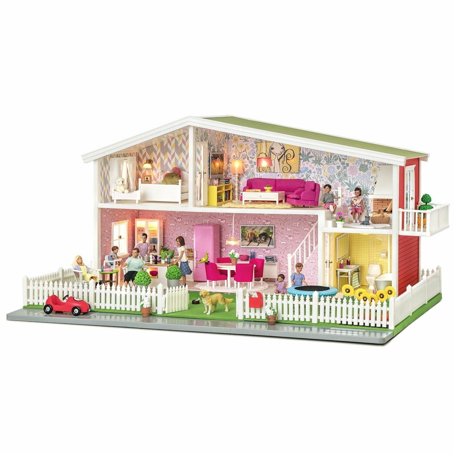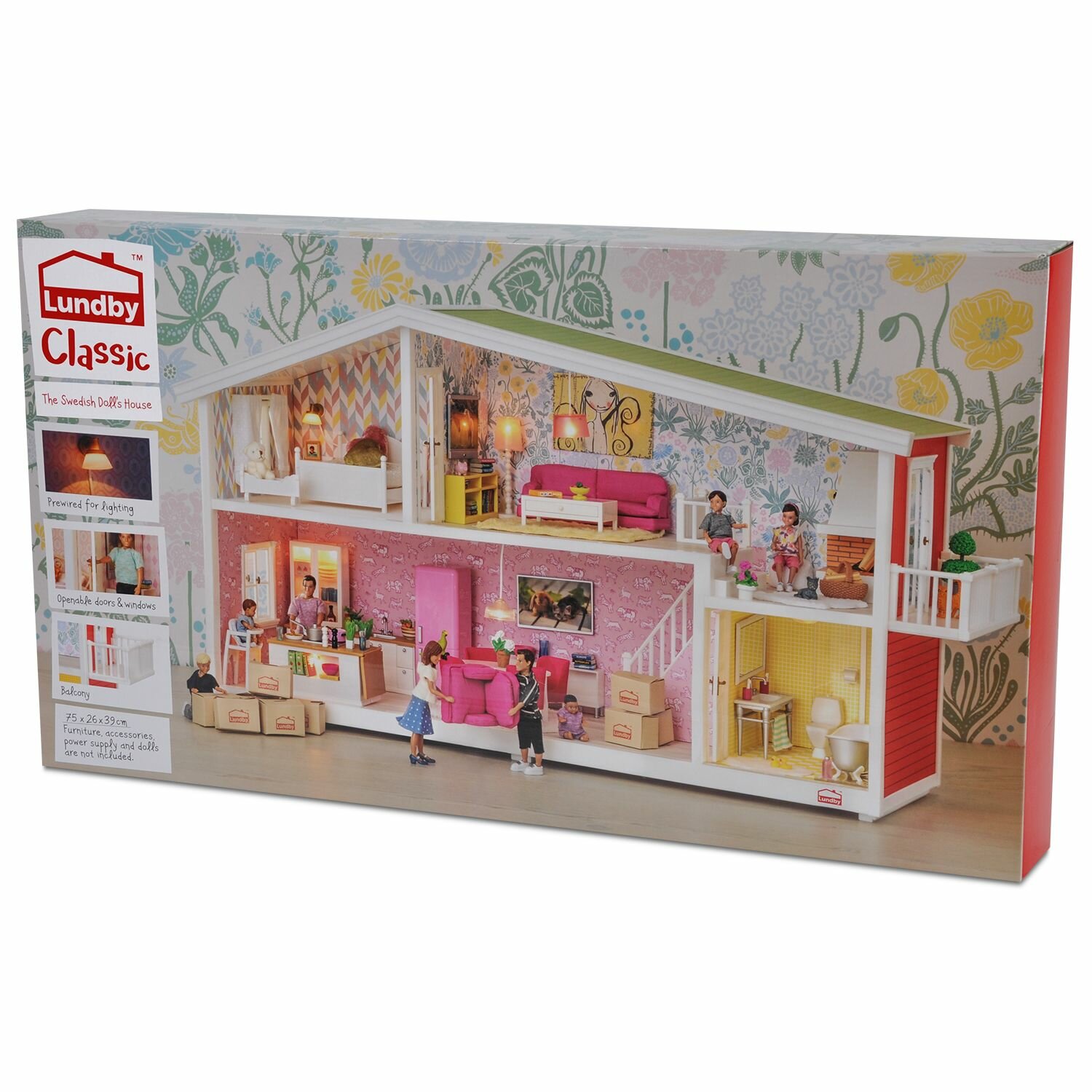 Классический кукольный домик Lundby создан специально для игры с мини куклами, высота которых не превышает 12 см. Дом для кукол изготовлен из ударопрочного, высококачественного, не токсичного пластика, поэтому абсолютно безопасен для детей. Передняя стена полностью открыта и предоставляет удобный доступ ко всем комнатам. Кукольный домик разделен на два этажа, на которых найдется место для каждого члена большой кукольной семьи.