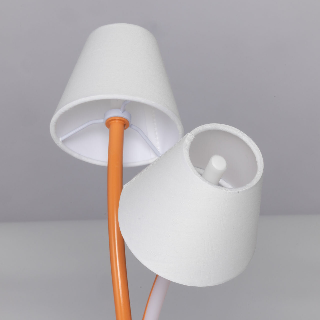 Терракотовый цвет основания эффектно выделяет настольную лампу, делая ее интересным акцентом в интерьере. Изящно изогнутые плафоны придают настольному светильнику оригинальность. Белый силикон плафонов мягко рассеивают свет. Эффектной изюминкой лампы является возможность комбинировать современное светодиодное освещение и классические текстильные абажуры. Благодаря стильному дизайну и высокому качеству, этот светильник станет прекрасным дополнением к любому интерьеру, принося в него индивидуальность и яркость. Светодиодные источники света экономичны и безопасны. Металлическое основание настольной лампы окрашено в терракотовый цвет. Корпус плафонов изогнутой формы выполнен из сплава алюминия с цинком и окрашен в цвет основания. Двухслойные абажуры состоят из текстиля белого цвета и термостойкого акрила с внутренней стороны. Абажуры прошиты. Светодиодные источники света закрыты белым силиконом.