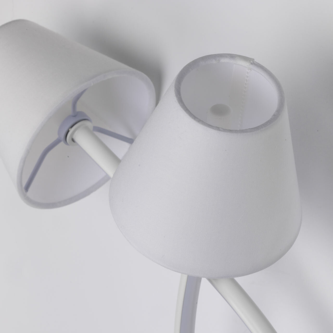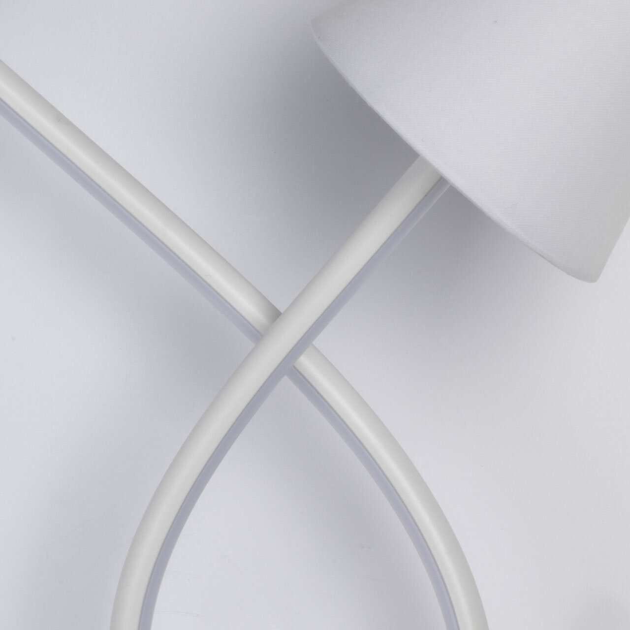 Белый цвет основания позволяет гармонично сочетать настенное бра с любым цветовым решением интерьера. Изящно изогнутые плафоны придают настенному светильнику оригинальность. Белый силикон плафонов мягко рассеивают свет. Эффектной изюминкой бра является возможность комбинировать современное светодиодное освещение и классические текстильные абажуры. Благодаря стильному дизайну и высокому качеству, этот светильник станет прекрасным дополнением к любому интерьеру, принося в него индивидуальность и яркость. Светодиодные источники света экономичны и безопасны. Металлическое основание настенного бра окрашено в белый цвет. Корпус плафонов изогнутой формы выполнен из сплава алюминия с цинком и окрашен в цвет основания. Двухслойные абажуры состоят из текстиля белого цвета и термостойкого акрила с внутренней стороны. Абажуры прошиты. Светодиодные источники света закрыты белым силиконом.