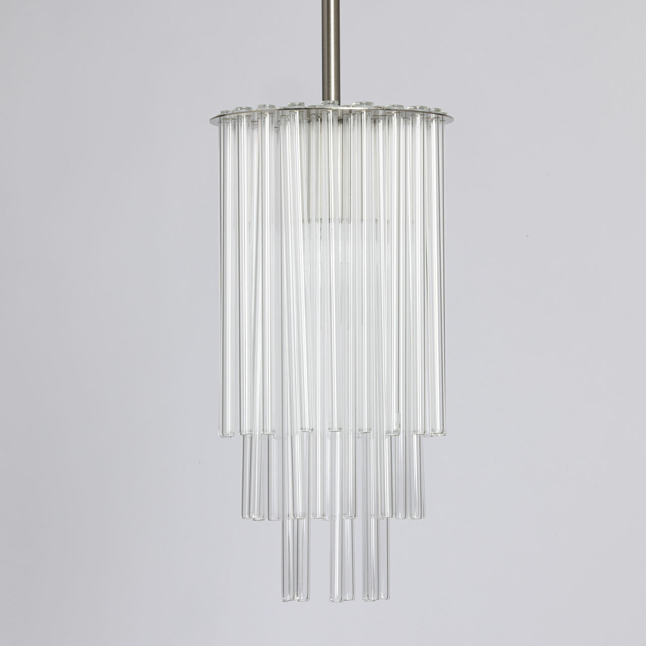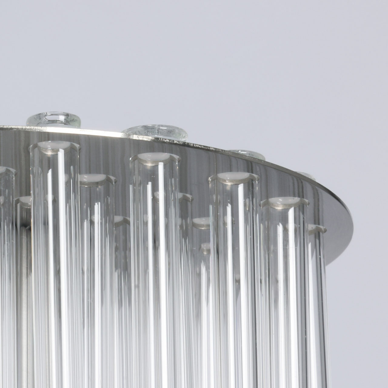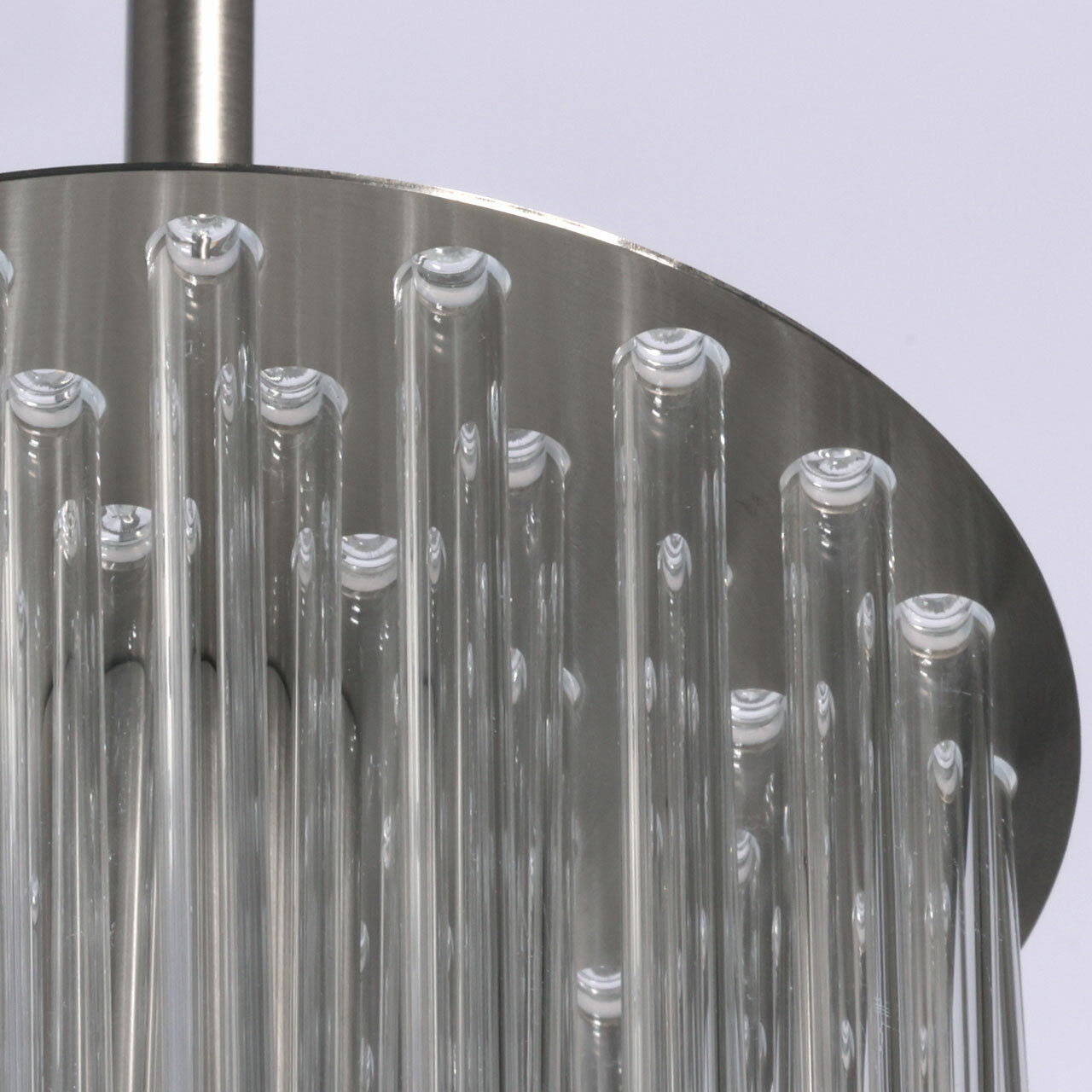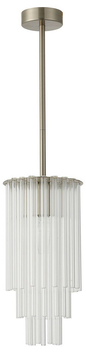 Актуальный цвет никеля придает люстре стильный и современный вид. Вытянутые хрустальные элементы декора добавляют люстре элегантности. Заменяемые источники света удобны в эксплуатации.